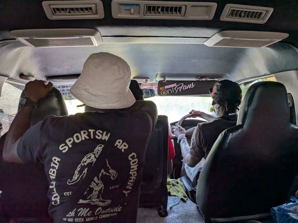 After a night near the airport, we prepared for our bus ride up into the hills. Our first task was to find a bus to take us into the city of St. George’s.