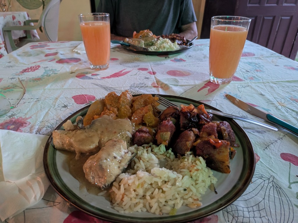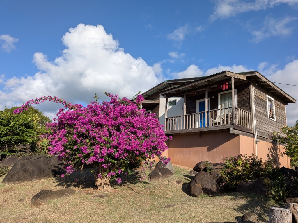 Feb 10 – Our apartment host picked us up at the airport, and drove us to a supermarket and ATM so we could purchase some supper and pay for our room. We found out that cash is needed here (two of our three hosts asked for pay in Eastern Caribbean dollars, worth approximately one third of a US dollar) although our research beforehand said that credit cards were widely accepted.
