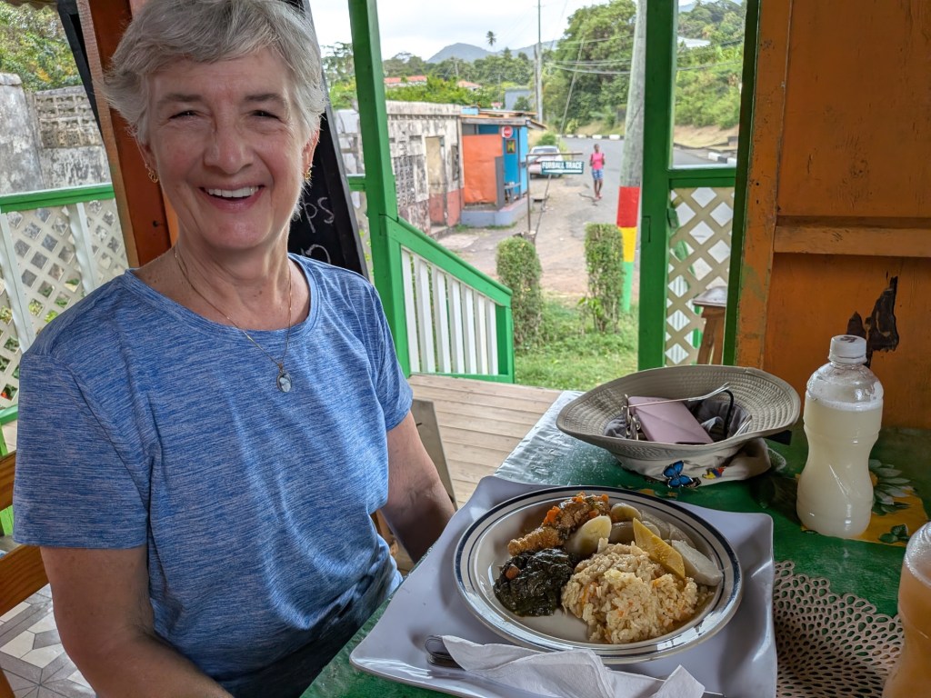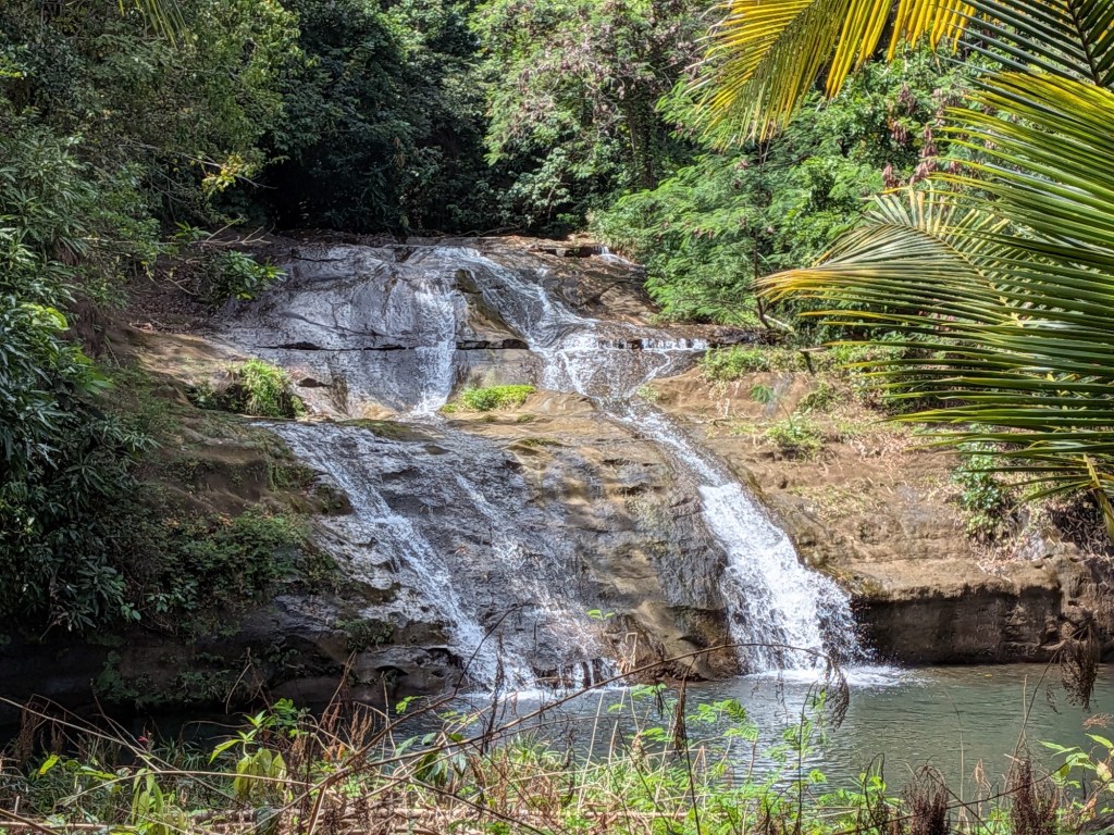 Feb 14 – Today, for something completely different, we walked to the main road and caught a passing van heading toward Mt. Carmel Falls, a must see attraction on this part of the island.