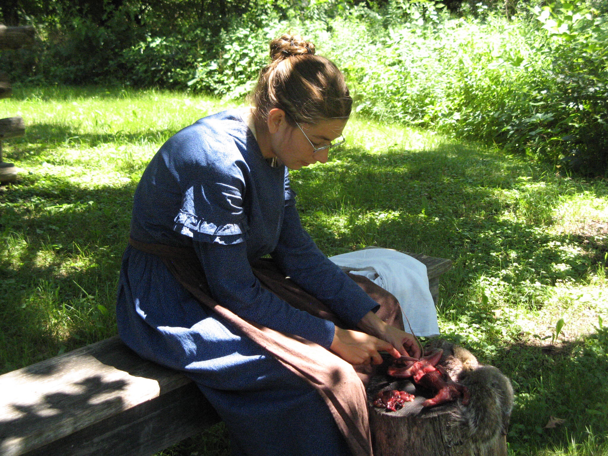 We had a great time playing tourist for the day, and talking with the blacksmith, hausfrau, schoolteacher, as well as taking pix of all the farm animals. The weirdest craft was watching a young girl skin and eviscerate a squirrel, and boil it up for dinner!
