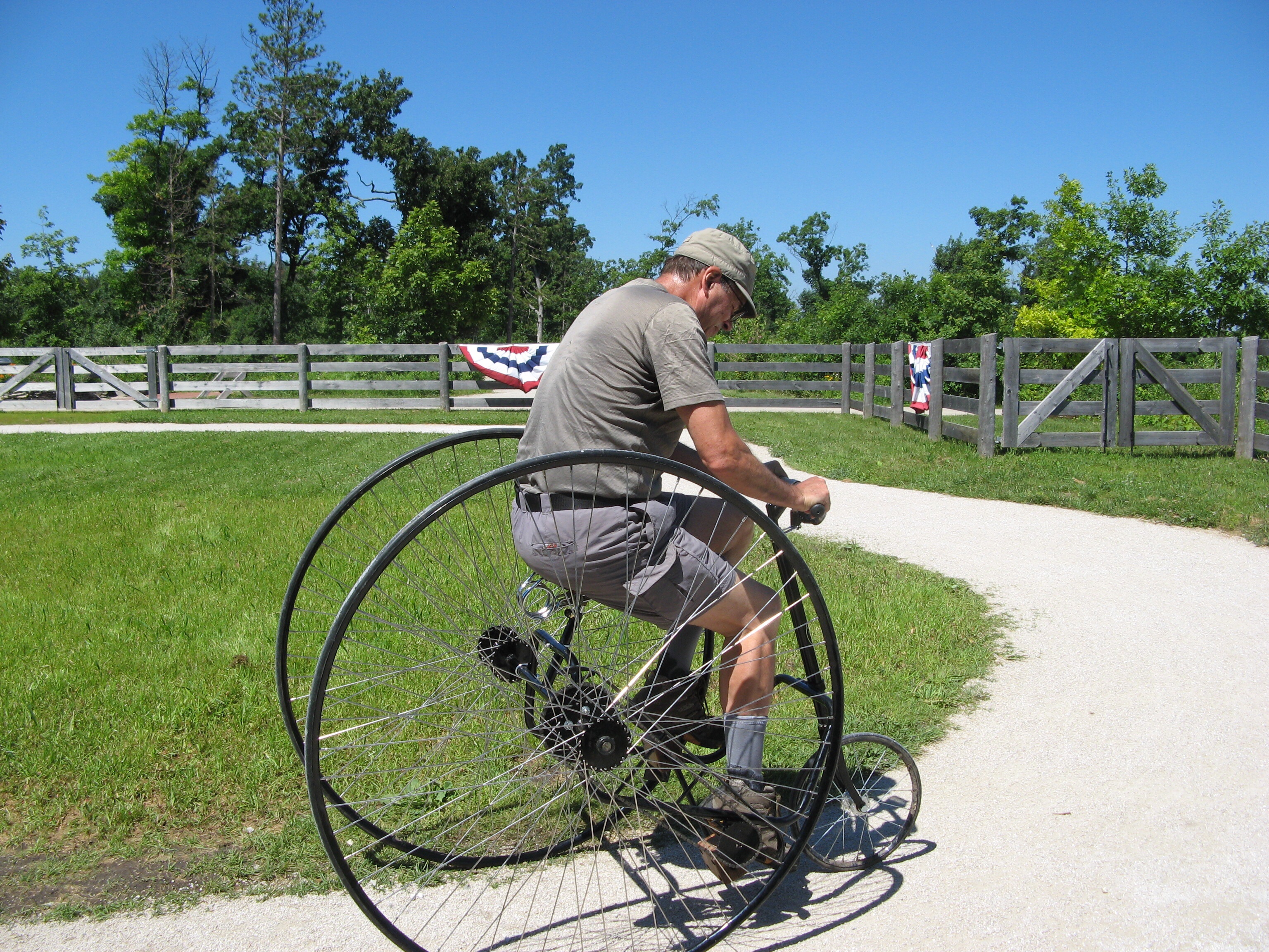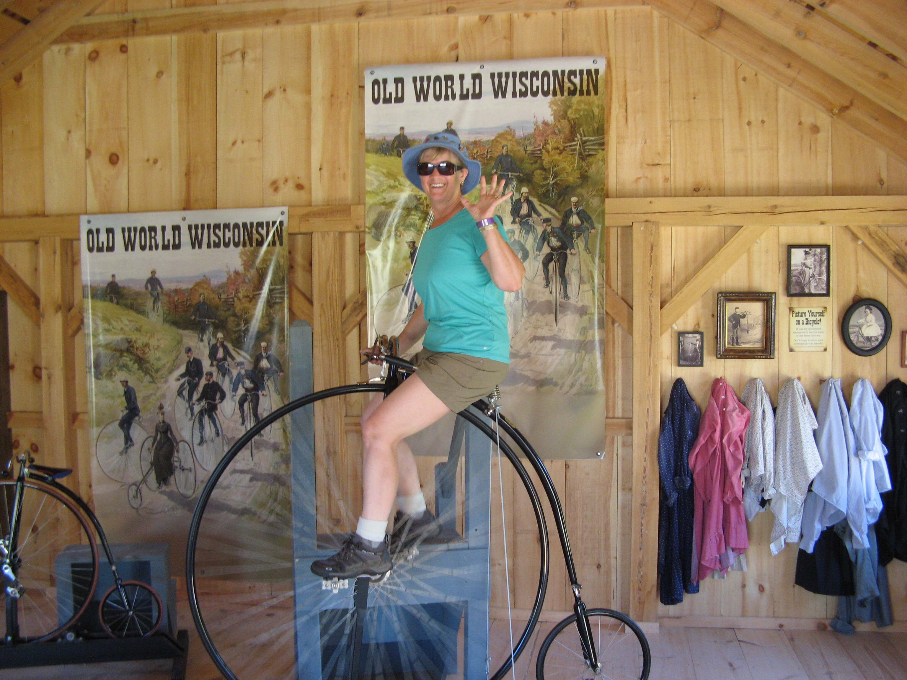We also got to ride on some old-timey bicycles. Jim was very good at this – me, not so much…