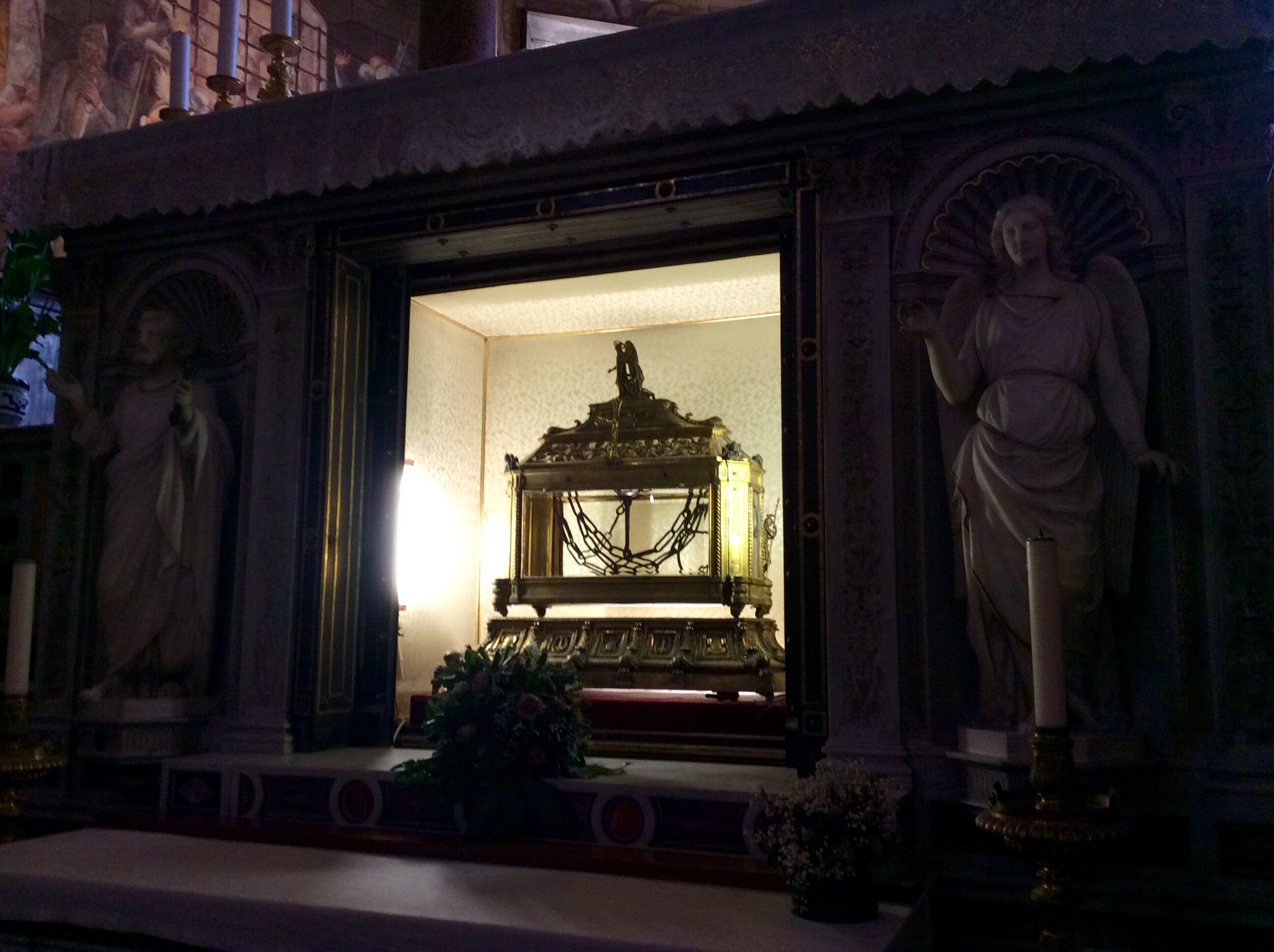 Right down the road is the basilica of St. Peter in Chains, San Pietro in Vincoli. Under the altar are the chains that miraculously fell away from Peter when he was imprisoned: