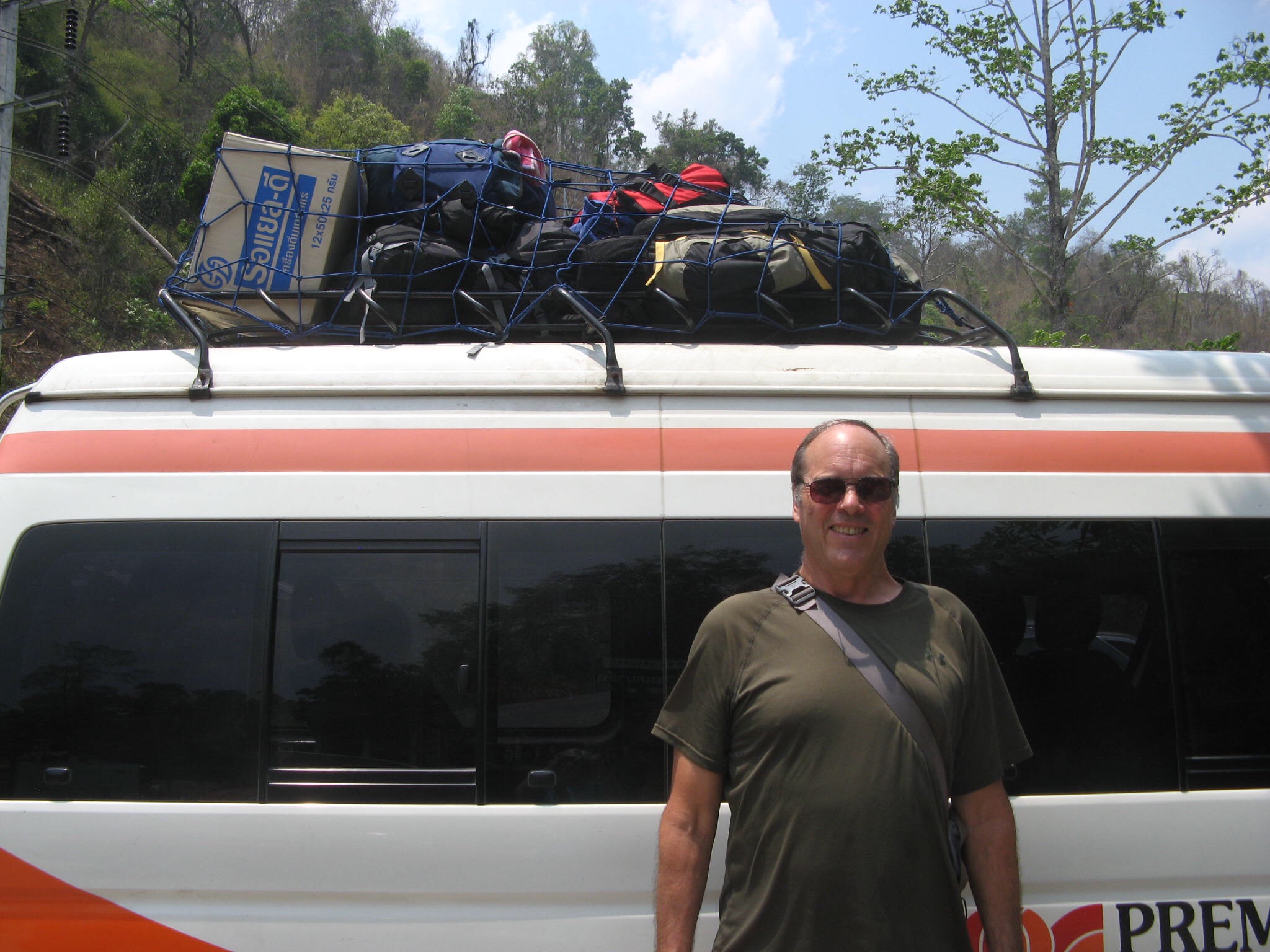 Our driver was a wild and crazy guy who liked to take mountain corners on two wheels. He announced, “Music!”, and popped a 70s greatest hits CD into his stereo. We cruised to Pai on the BeeGees, Eagles, and Donna Summers – he didn’t know any English, but that didn’t stop him from phonetically singing along. He, Jim and I were the only passengers who were alive in the 70s – the kids who filled the van could have been listening to Mozart – ancient history.
