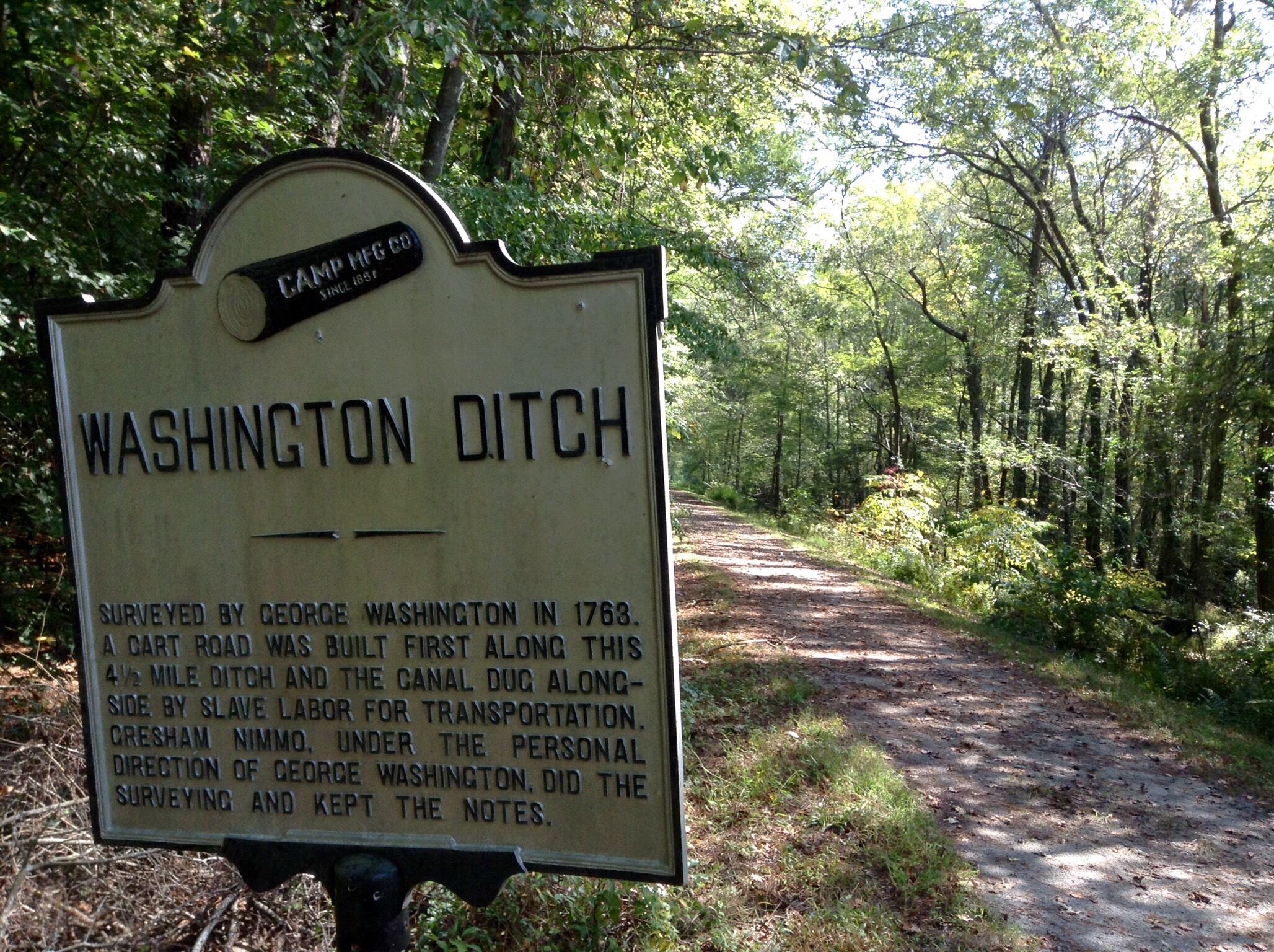 The miles of canal remain, with an excellent dirt roadway maintained by the forest service alongside, which affords great hiking or biking, and other areas dedicated to hunting. No fires or overnight camping are permitted. We find this trail not at all dismal!