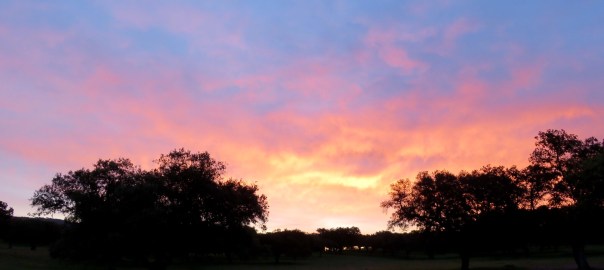 Today we have a 12.5 mile walk. All the stores and bars are closed for the fiesta, so there is no sense even thinking about a hot breakfast or coffee. We ate the yogurt and oranges Jim had the prescience to purchase yesterday, and hit the road at 7am. We took a moment to appreciate the Easter sunrise, pictured above.