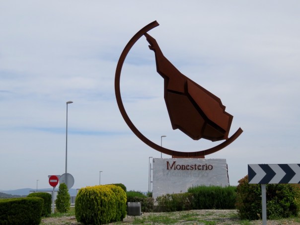 Apr 17 – We decided to spend a day here in Monesterio, as we need the grocery store to open so we can reprovision. Monesterio is the Iberian Ham capital of Extremadura, and we also didn’t want to miss our chance to see the Museo del Jamón. The sign at the entrance to town shows how important ham is around here.