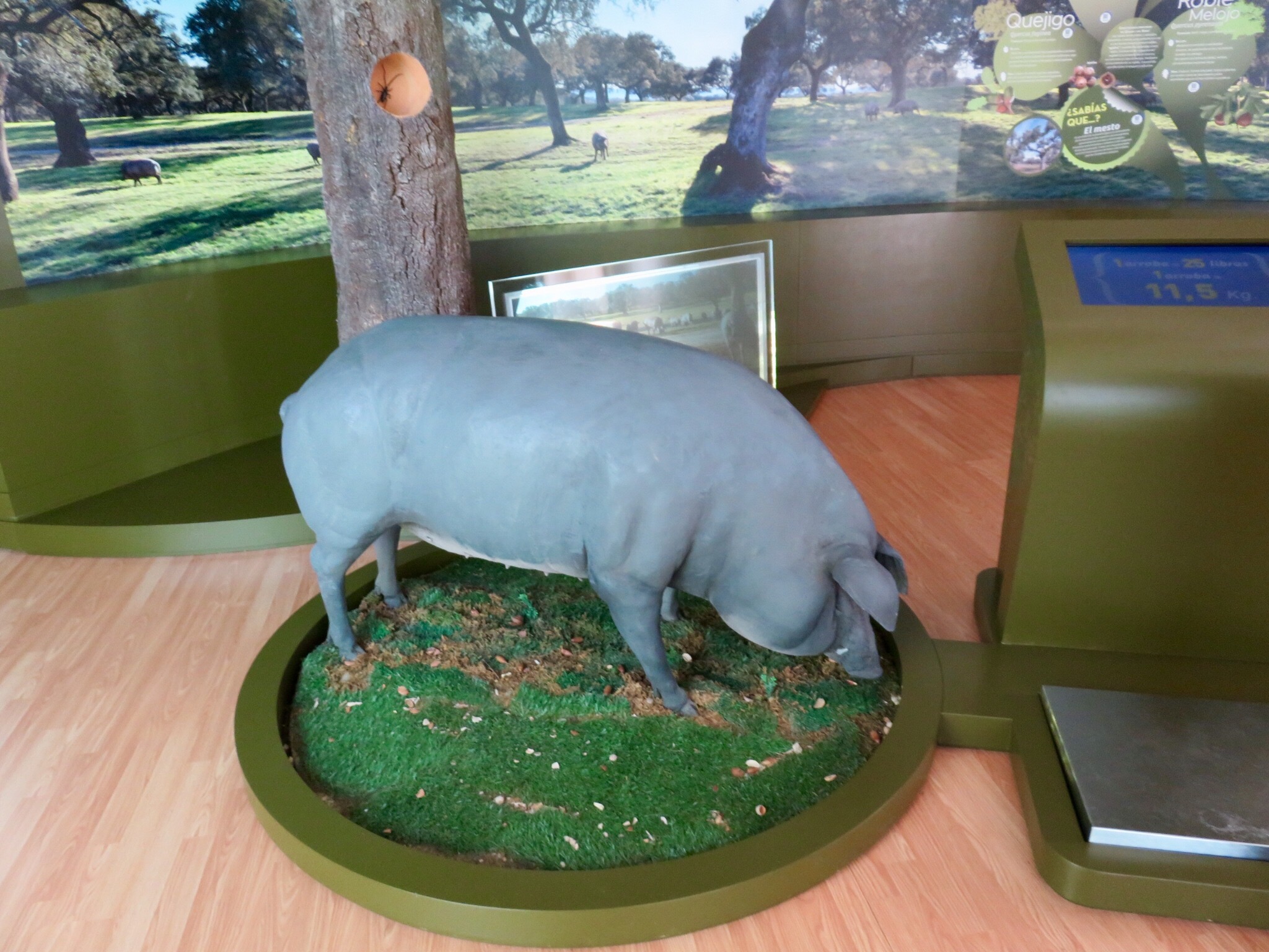 We arrived at the Museum bright and early, and were given a very comprehensive tour of the raising, slaughter and sausage manufacture of Iberian ham, which are produced by the black pigs we spent some time on the trail with the other day.
