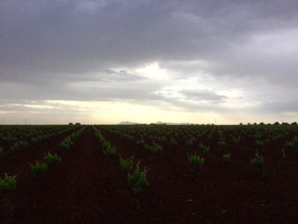 The sun never really came up, but there was a faint light in the east as we walked among the grape fields.