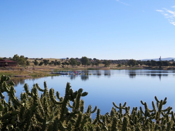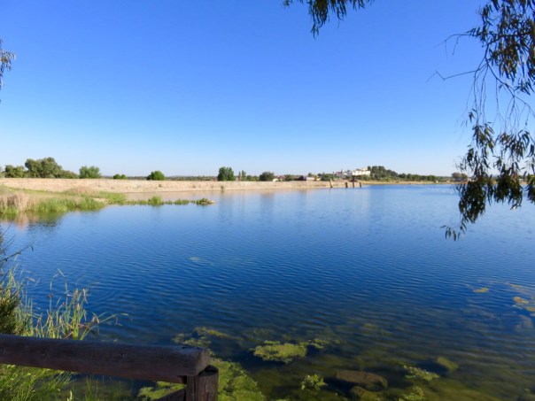 Several miles out, we walked around the Proserpina dam, built by the Romans to provide water for the aqueducts of Mérida. Quiet and so pretty in the morning light.