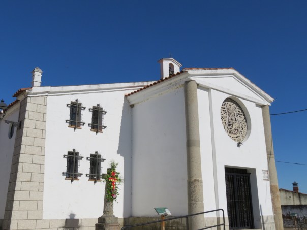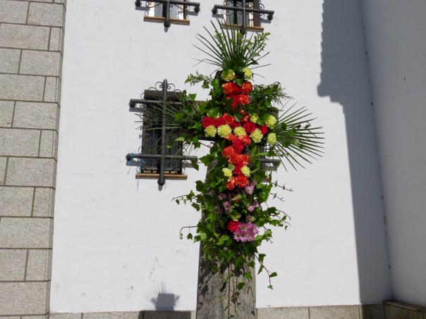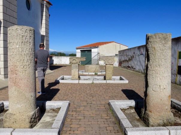 We checked out the church of Santiago Apostol, which was closed but had a collection of old Roman markers on display. The flowers on the cross are also for Primavera, I think.