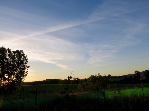 Once we were out of town, all the trail arrows were obliterated. We thought the trail might have been moved, which happens from time to time, but we could find no alternative route in any of our resources. So, today’s walk of 7 miles was totally on asphalt, following Google Maps, which thinks you are a car and directs you down a paved road. Roadwalks are not my favorite – after walking any distance on pavement, a dirt path feels as soft as walking on pillows. I don’t know how marathoners run for 26 miles, all on pavement. Hats off to them!
