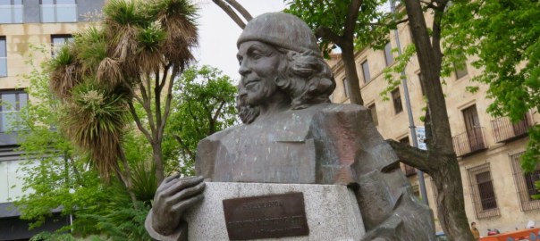 This morning we looked out the window at the gray skies and puddles, and dear sweet Jim said, “Let’s go to Salamanca!” He booked our bus tickets online and found us a hostal near the Old City. At 9:45 we were on the bus, looking at all the blue Camino signs rolling by along the highway. By 11:15 we were in Salamanca. 10 minutes later we were at Hostal Granada, run by a very personable young man with good English. Our room is lovely. There is a real supermarket down the block. My feet are happy, and so is the rest of me. Time for some R and R.