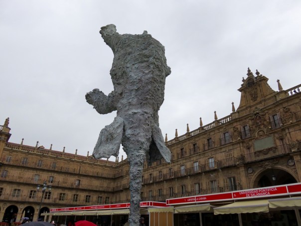 The Plaza Mayor, the huge main square, was hosting a book sale, so there were bookstalls set up all around. For some reason, there is a huge statue of an upside down elephant here. Wait til I tell Emma – she loves elephants!