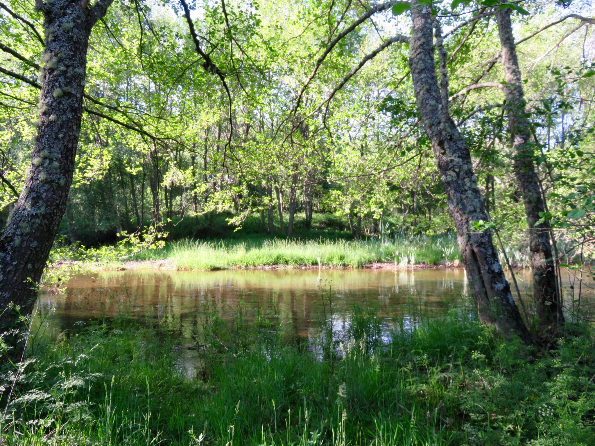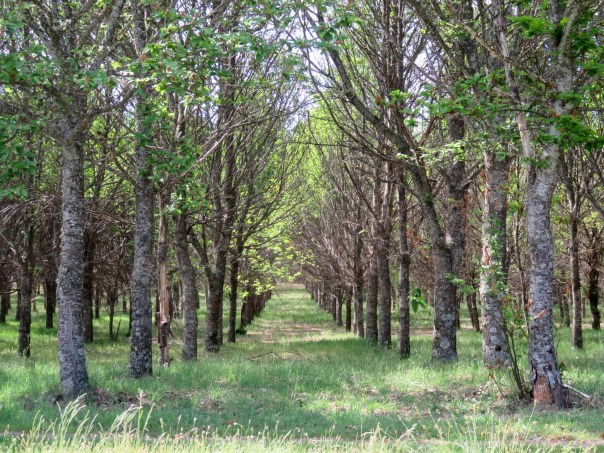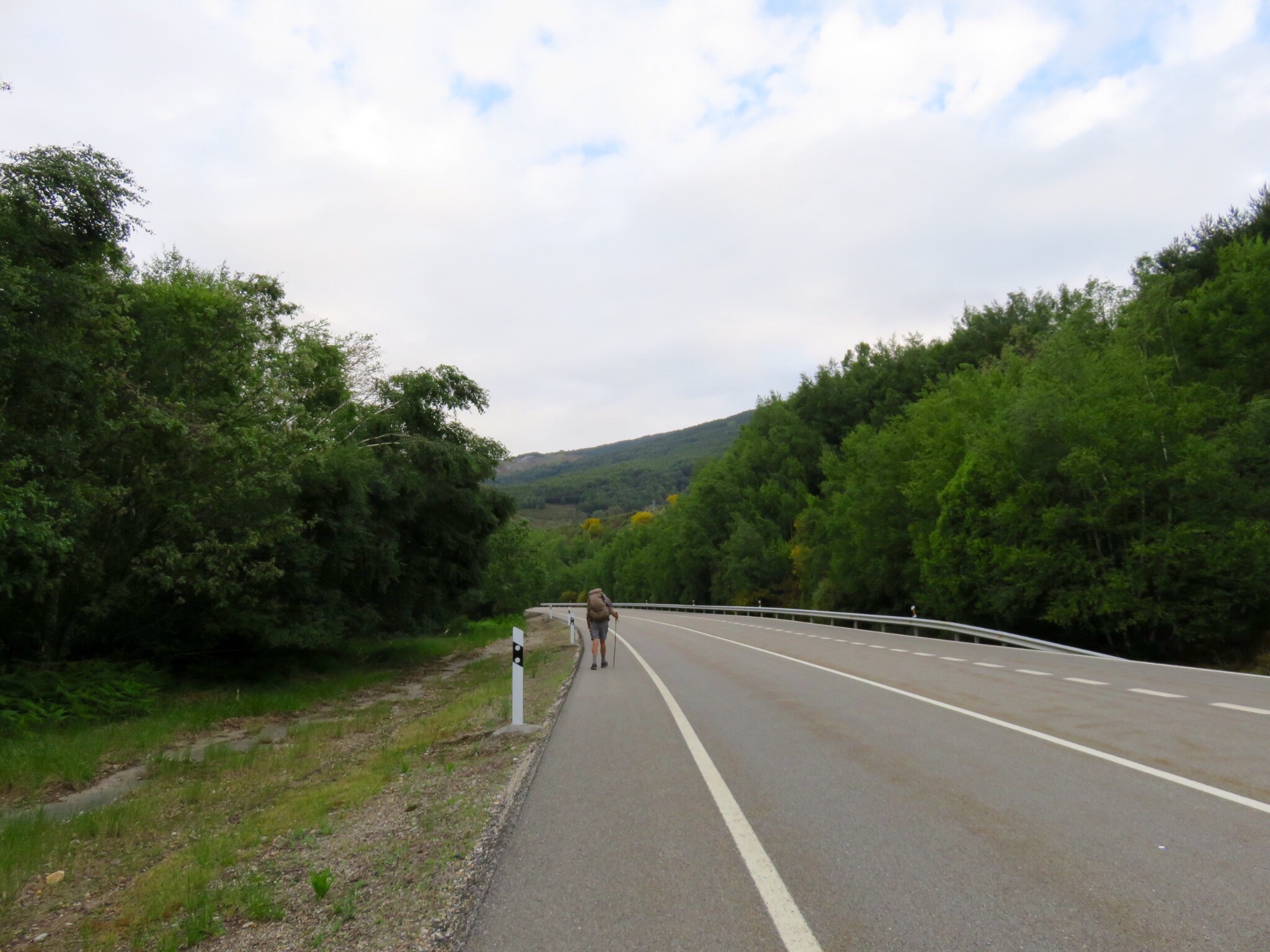 After leaving the river, which involved some rock hopping and wet boots, our route ran mostly along the roadside, sometimes on the asphalt, and sometimes on a tractor path next to the highway. Then we entered a shady wood.