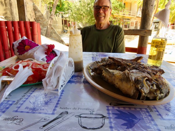 Mar 4 – So here is our typical day at the beach: coffee in our room courtesy of the hotel, leisurely yogurt, cheese and tortilla breakfast in bed, courtesy of yesterday’s walk to the store. Down to the beach to alternately swim in the crystal clear water and sit in the shade of a restaurant umbrella.