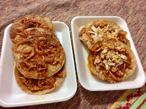 A block from the store is a woman sitting with her small children in front of her house, selling stringy bits of chicken and onion swimming in picante sauce on a corn tortilla – four for a dollar. When Jim asked her for eight of them, she warned, “they are spicy”, and gave him a taste before she wrapped them up. Every day, well-meaning people warn us that food here is spicy, but it’s not really – on a Taco Bell scale, it would be considered mild.