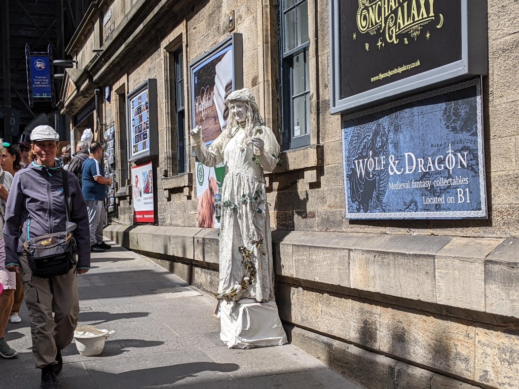 We saw the memorial to Greyfriar’s Bobby, the little pup who faithfully guarded his master’s grave for fourteen years. The patina has worn off his nose, as so many people touch him for luck.