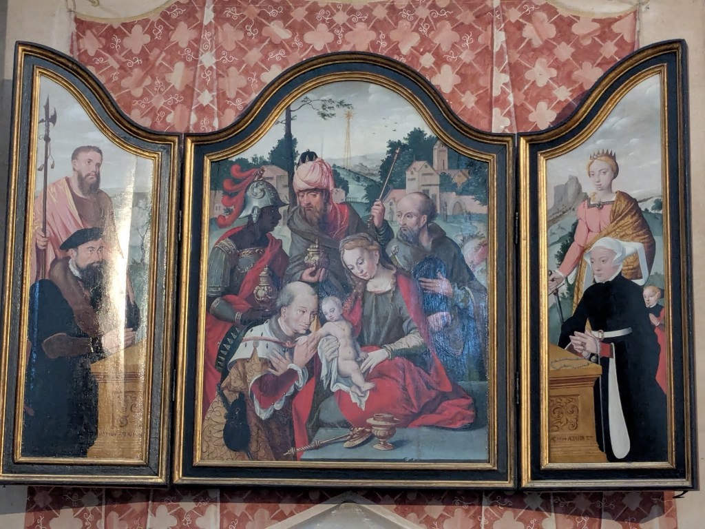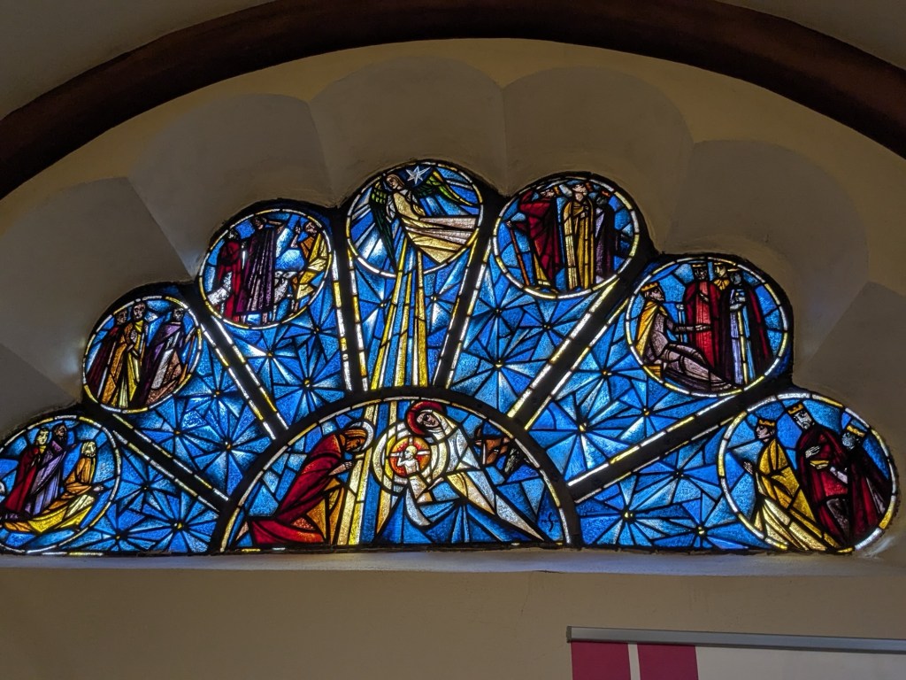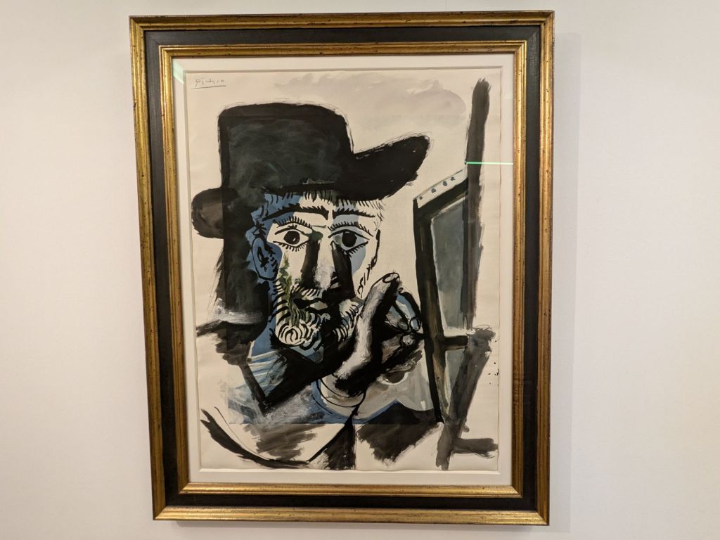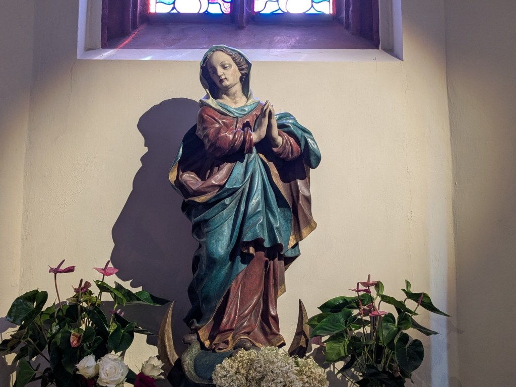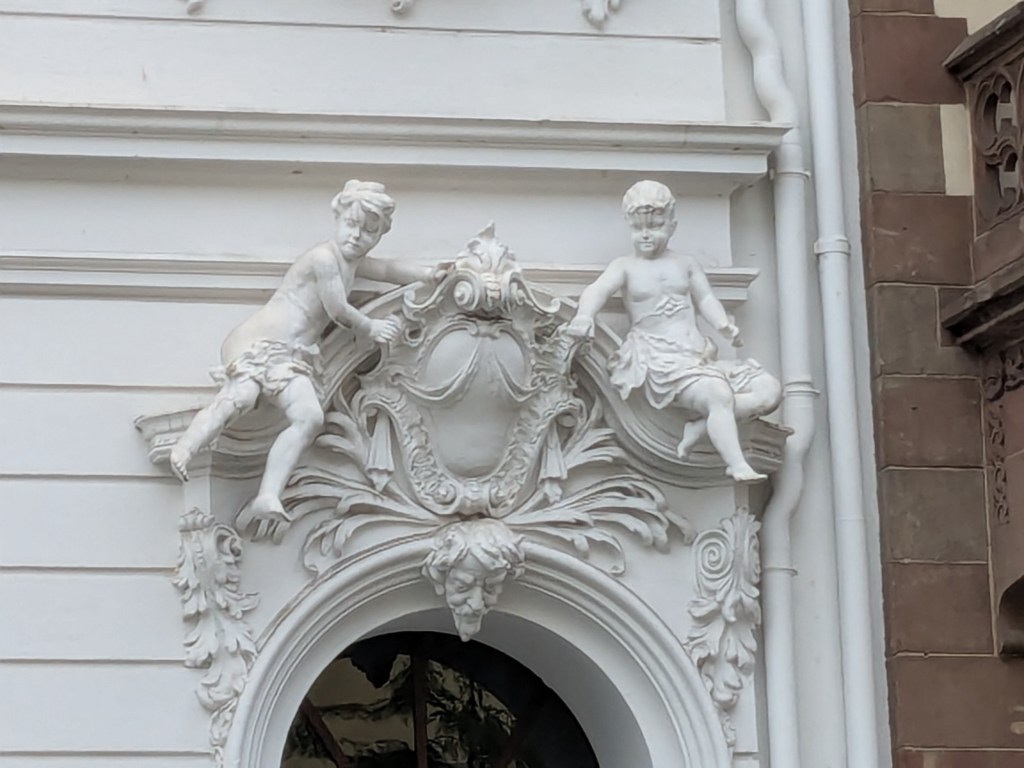 Quaint architecture, old fashioned but not oldCute little statues with moveable armsA pedestrian shopping street They have a Woolworth here!We looked into the Church of Our Lady, which has been an active parish since the 600s. Parts of this building dates from 1180, with renovations after WWII.The altarpiece New stained glassA bit of wall art the sign says “to the little kettle”These statues had little plaques posted next to them, but we didn’t get the jokes…Pretty flourishesWe walked toward the river A statue of Kaiser Wilhelm on his horse, accompanied by an angelThis is the Eck (corner) – where the Moselle River on the right flows into the RhineRhine River cruises on one sideA not very old (rebuilt) castle on the other sideThere is a monument celebrating all the different regions that make up GermanyWe popped into the modern art museum. There was one Picasso….… but otherwise, we were not impressed I had been craving a good doner for a while, and this was the town to get one. With the addition of a little red cabbage for a uniquely German twist, it was delicious!Thanks Koblenz – we had a great time!