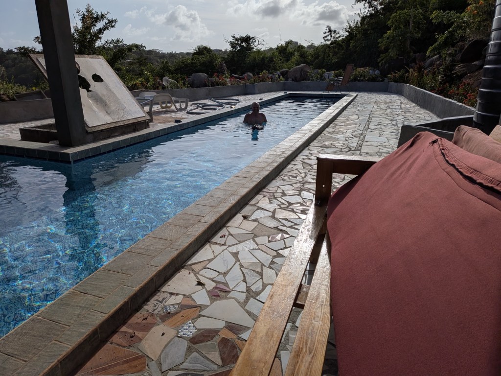 Feb 12 – We are in super relaxed mode, as there is really not too much to do here. Ingrid makes our breakfast in the morning (we have no input on the breakfast selection, but everything is very good), we walk down to the beach to swim, have lunch in town, and then swim in the pool in the afternoon.
