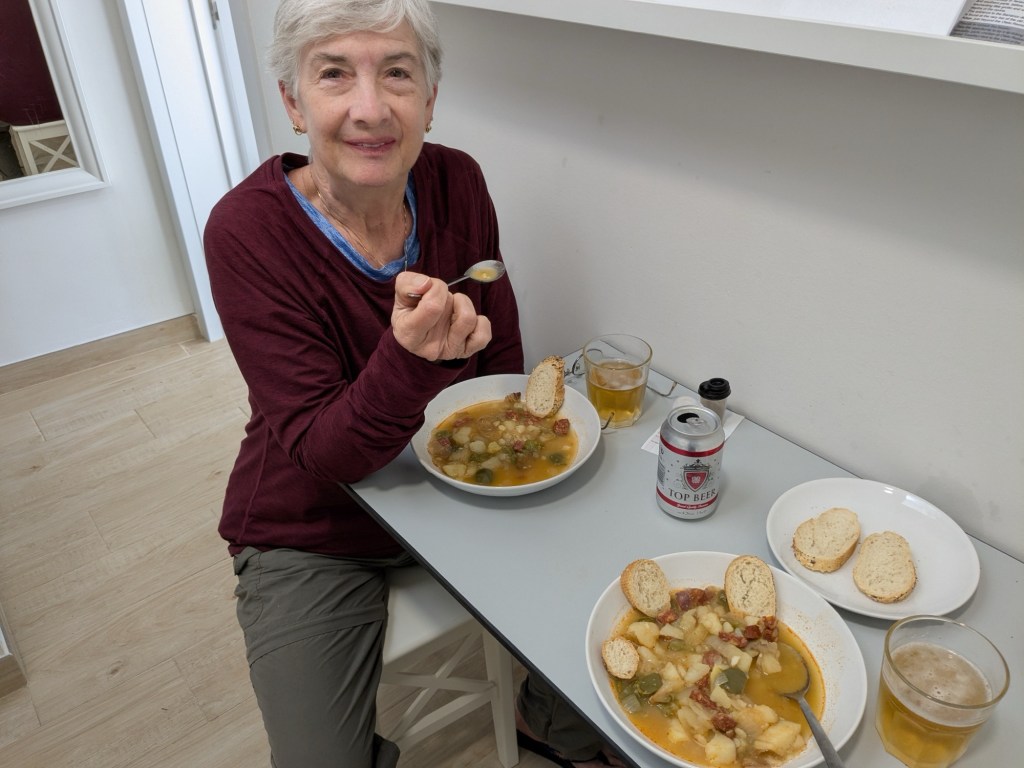 We celebrated a successful day with Jim’s yummy potato vegetable soup. A fine day!