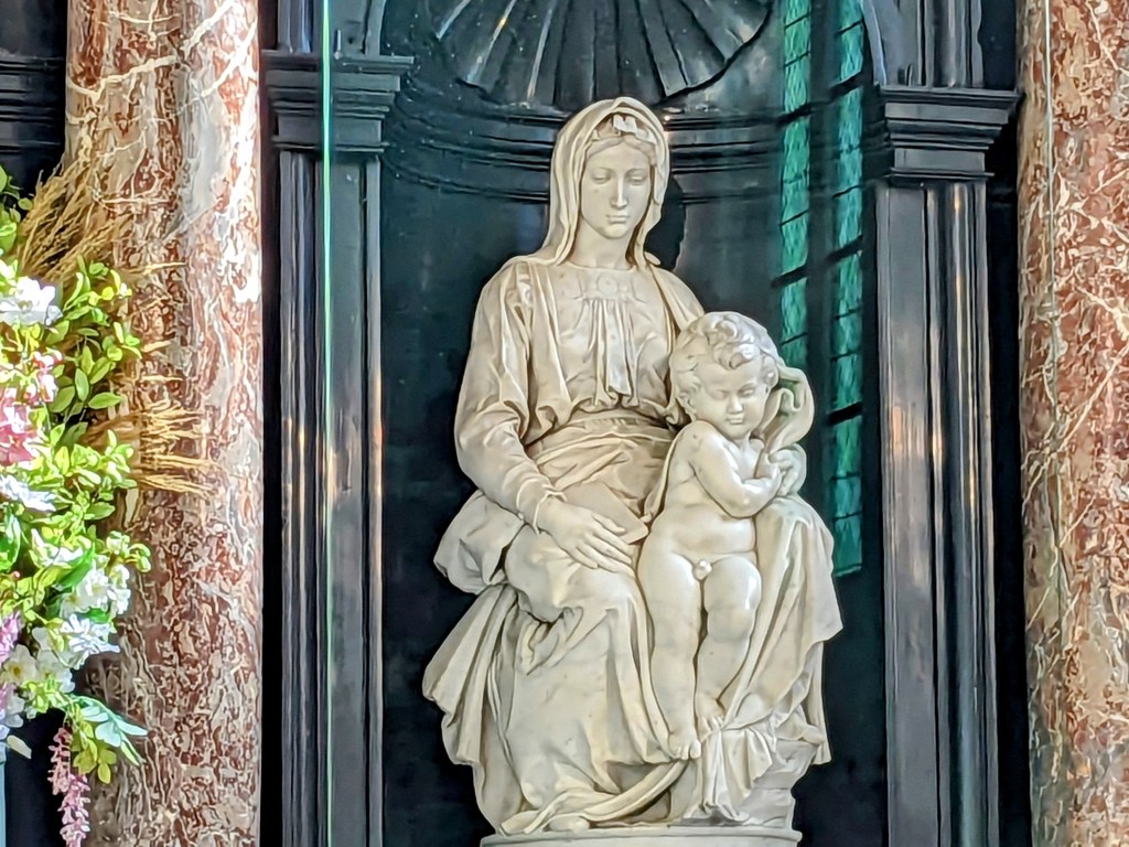 Now, you know I’ve saved the best for last. This church holds the Madonna of Bruges, the only statue by Michelangelo that left Italy during his lifetime. It depicts Jesus not as an infant, but a toddler standing on his own, and Mary looking down sadly.