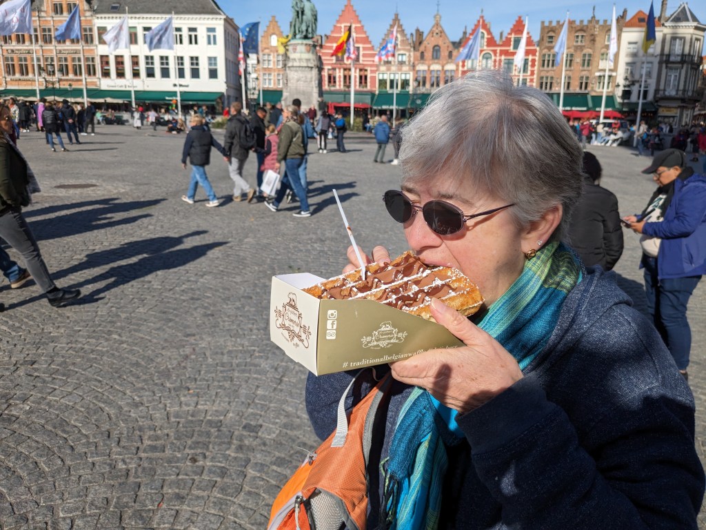 Our trip to Bruges would not be complete without one final thing – a Belgian waffle dripping with chocolate. It was messy, but we enjoyed every bite!