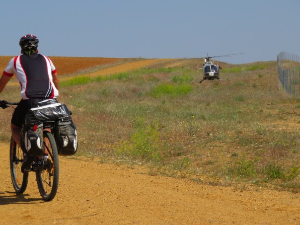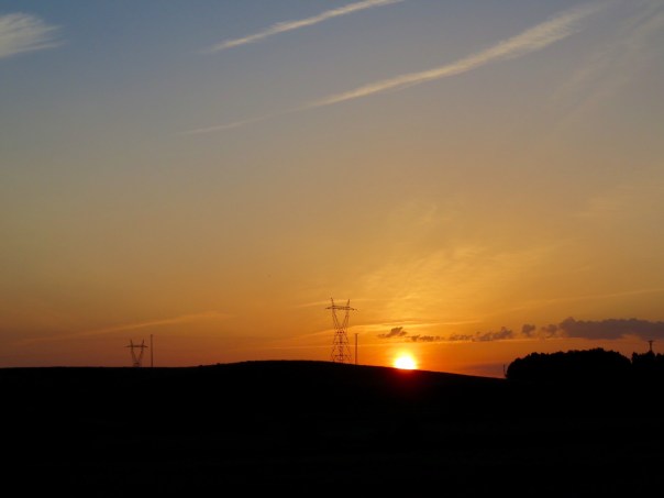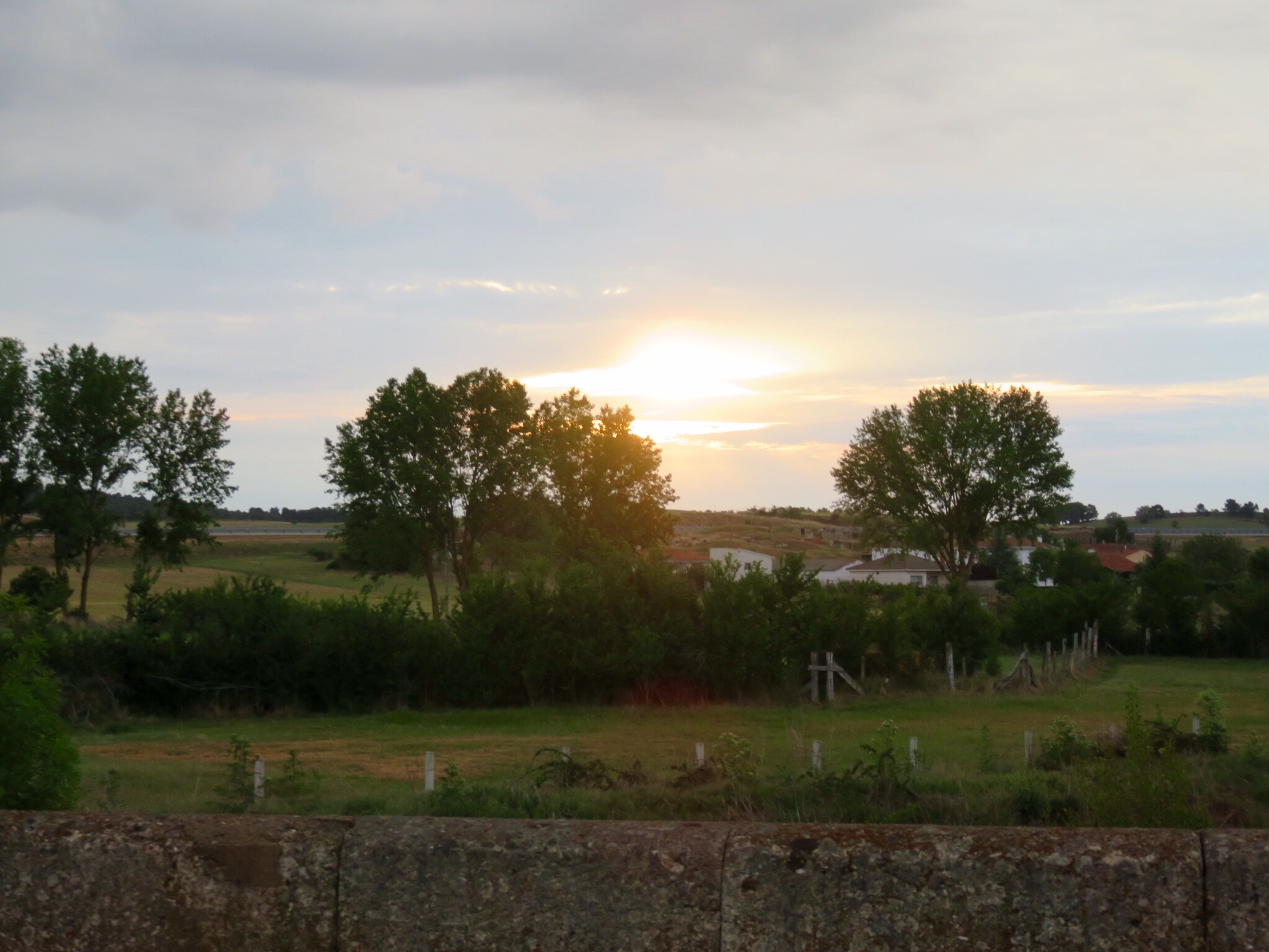 May 25 – Up early again today, for a fourteen mile hike to Santa Croya. Daybreak by the Torre (tower) with storks, of course, and sunrise from the road.