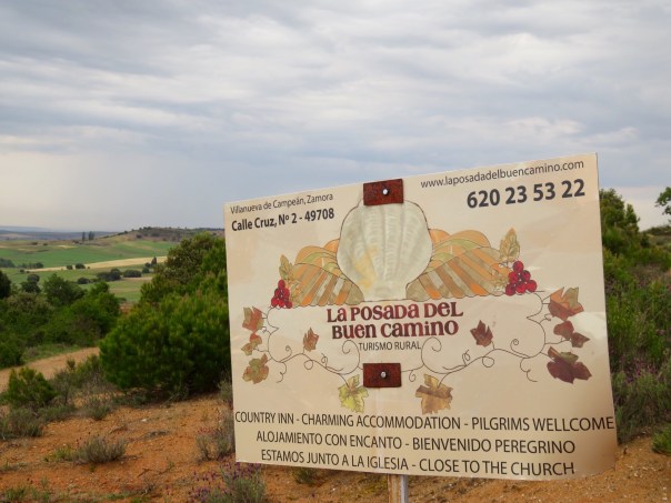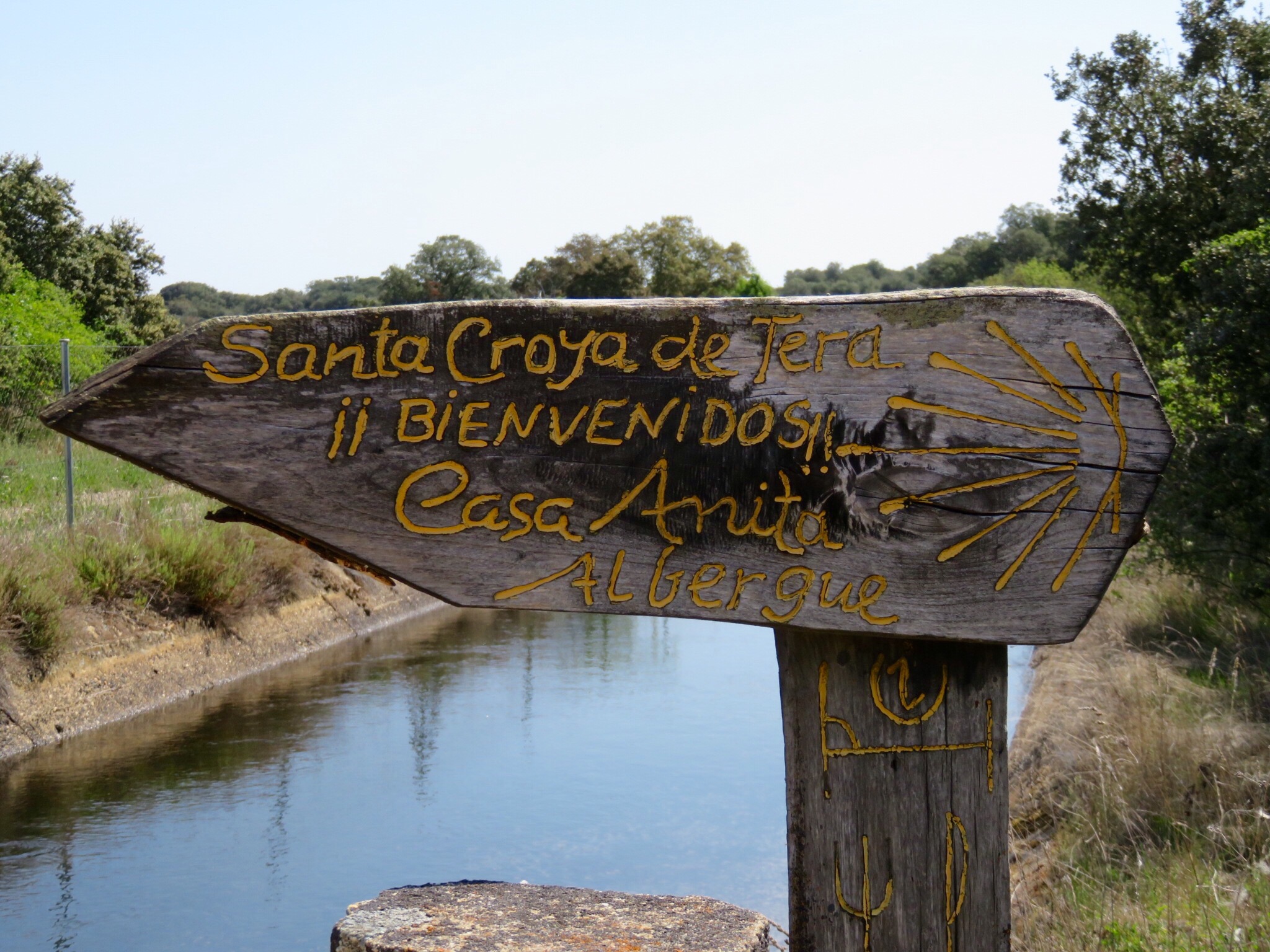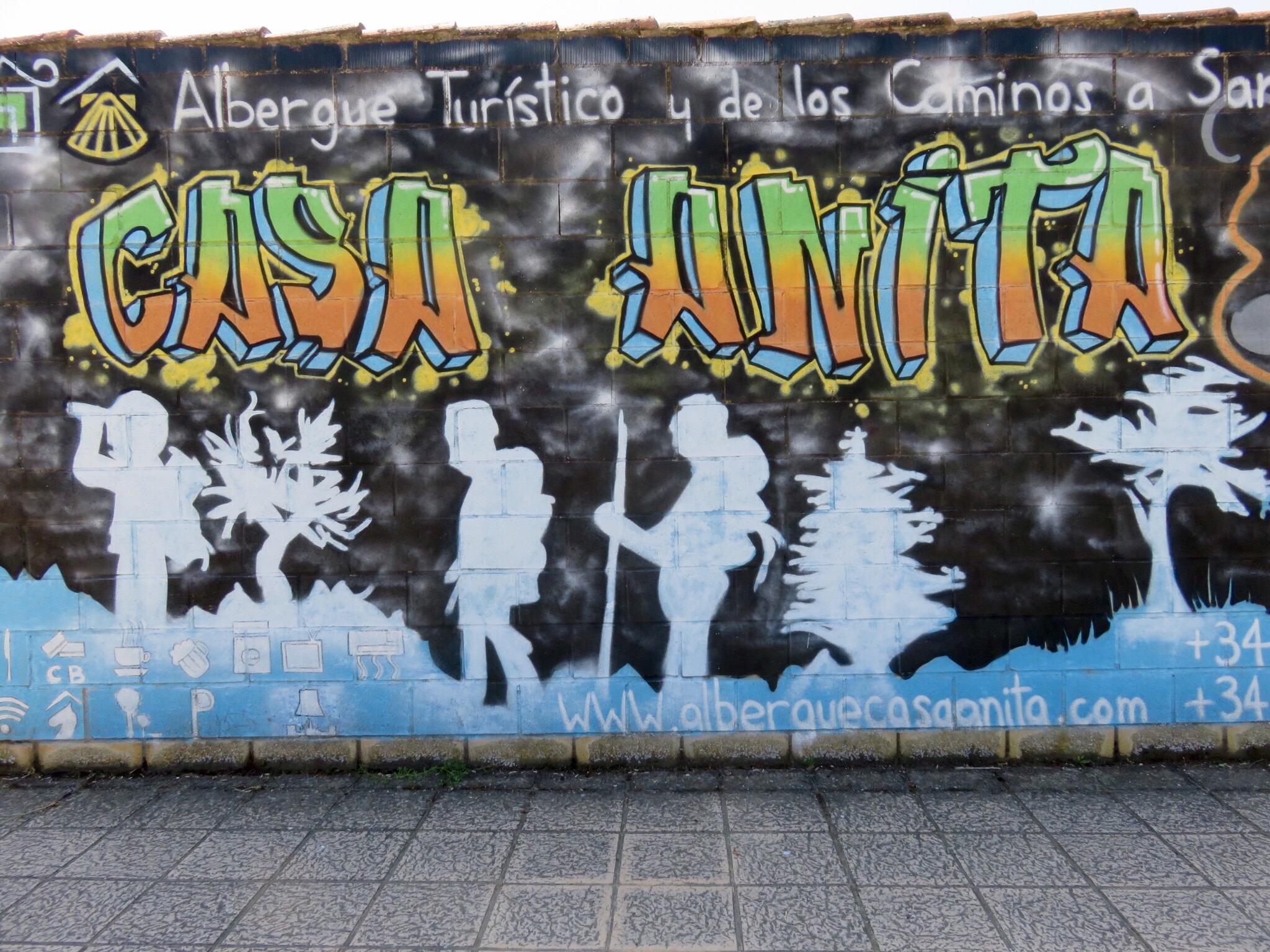 Tonight we are staying at Casa Anita, a huge alburgue that is the only place to stay in Santa Croya. In addition to the dormitories, they rent private rooms upstairs, and we booked one. Signs let us know we are getting close.