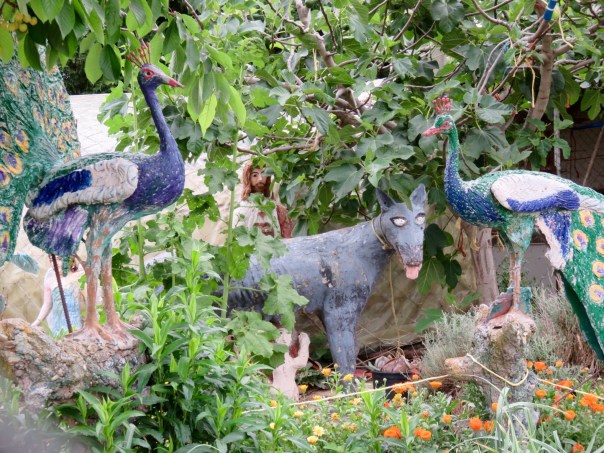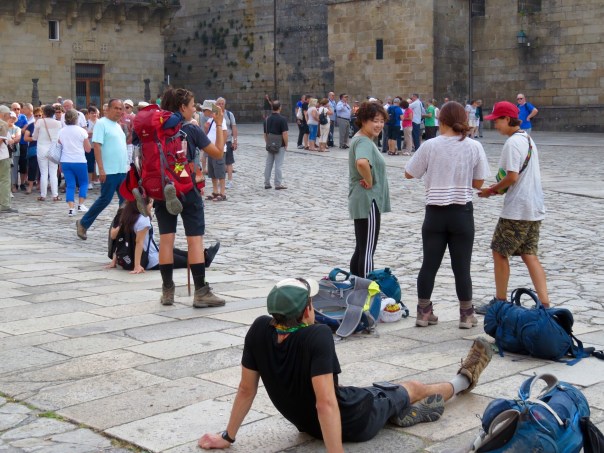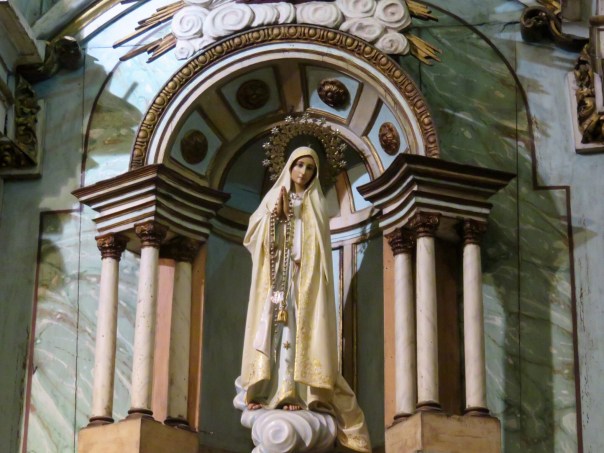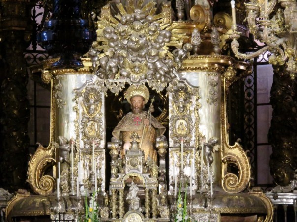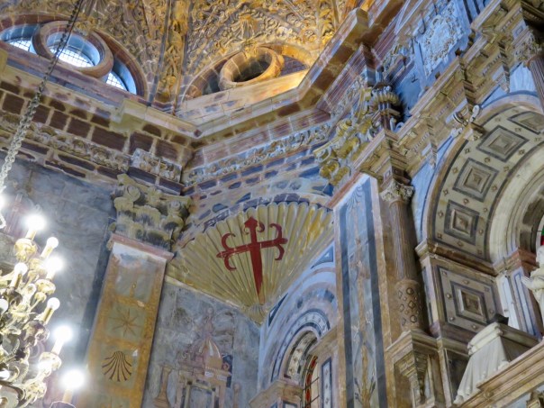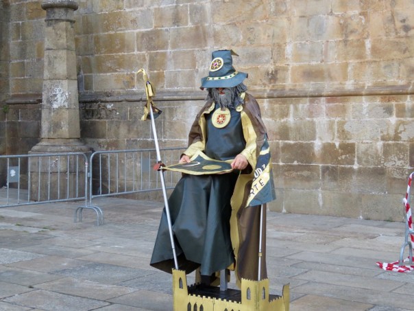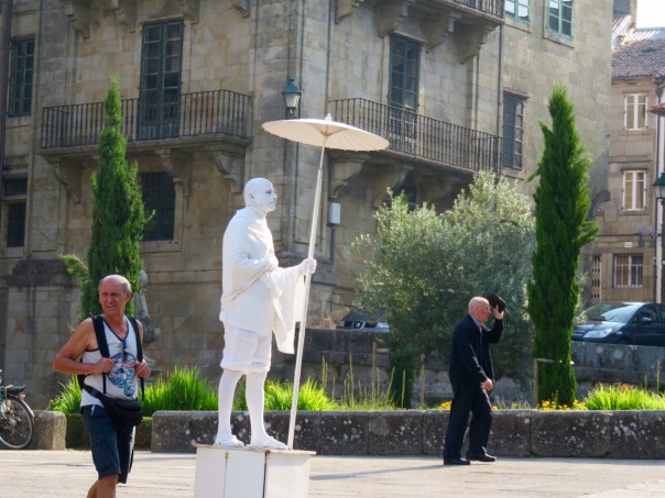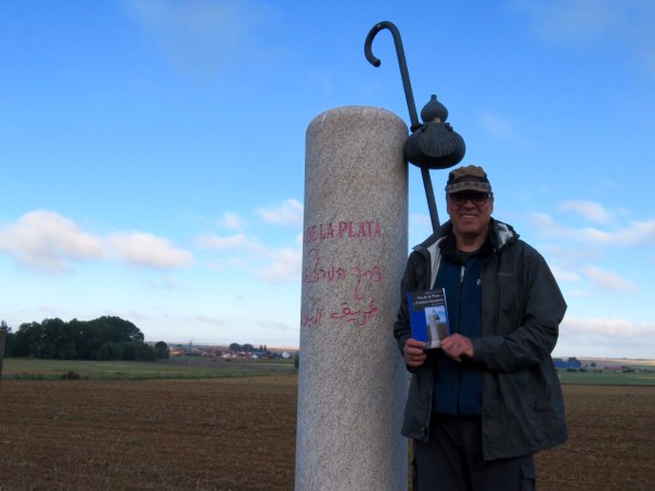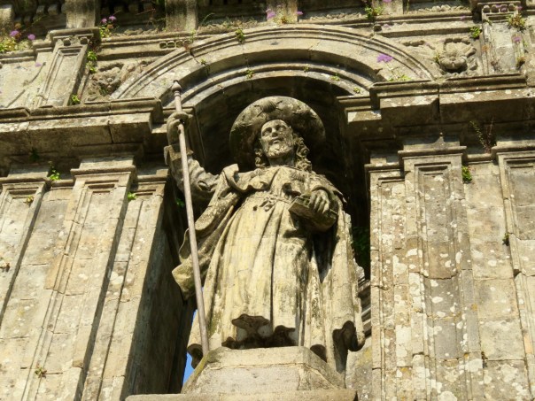On the wall was a reproduction of the statue we were looking for – St James with his trademark staff and shell. We asked where the original statue could be found? Oh, she said, (in Spanish of course) it’s around back by the cemetery. Whoopee!