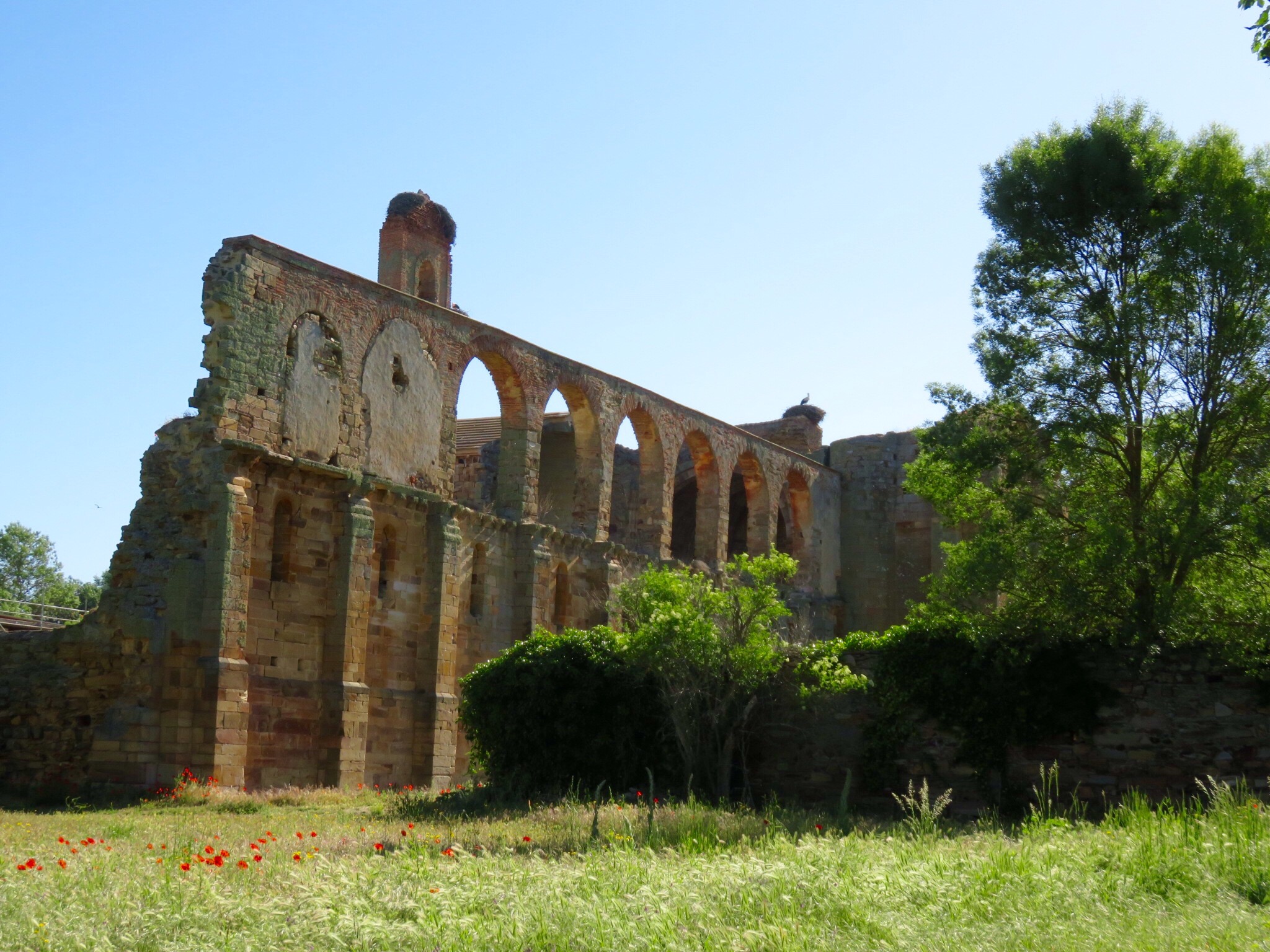 We woke to thunderstorms, making us glad we weren’t planning to walk far today. We hung around the alburgue until almost 10, then set out for Santa Marta. The Romanesque church was small, and was identified as a Monesterio, so I guess there used to be more to it.