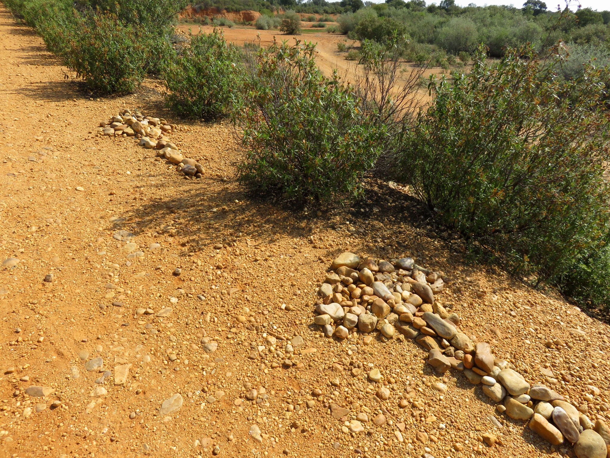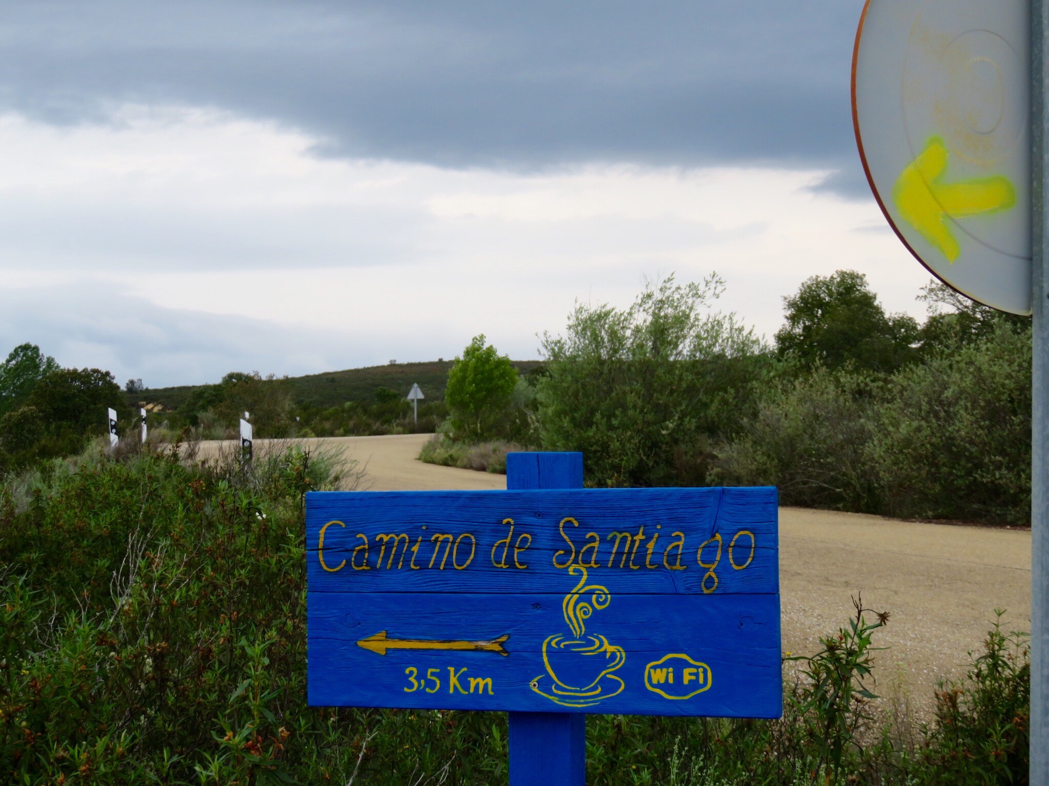 At a fork with no clear sign to indicate the right direction, pilgrims made their own arrows to guide us: