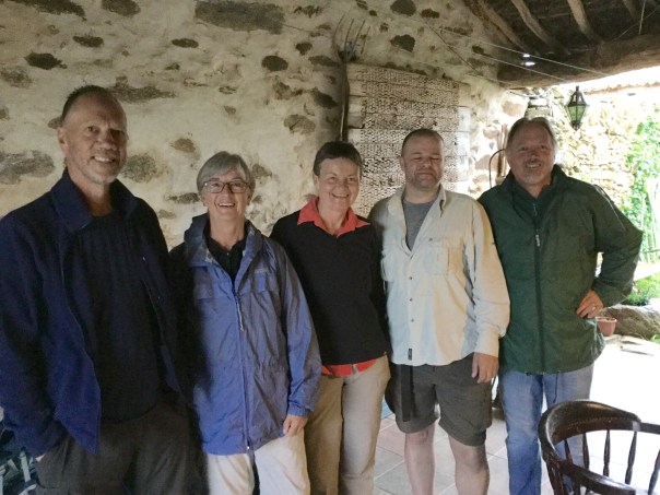 We arrived downstairs about 5 minutes early, to check out the tables. One long table was buzzing in French, but at the other, we heard English! Yay! We sat down and introduced ourselves to three Australians and the Irish lad, and had a long, rambling conversation over wine, vegetable soup, pasta, pork loin, salad and fresh fruit for dessert. Nicest evening. 208 miles to go.