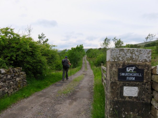 Jim went back to the farmhouse to ask John’s advice about whether to wait an hour or so in the hope that the severity of the wind might abate, but John counseled him to go now, as it was supposed to get worse later! We put on our pack covers and rain gear, tightened every strap, and set off again. Remember: we are in the middle of nowhere. There is no phone service and no Uber (not a thing here) or taxi we can call. We can’t stay here another day. We have a reservation in Cowgill. We have to walk.