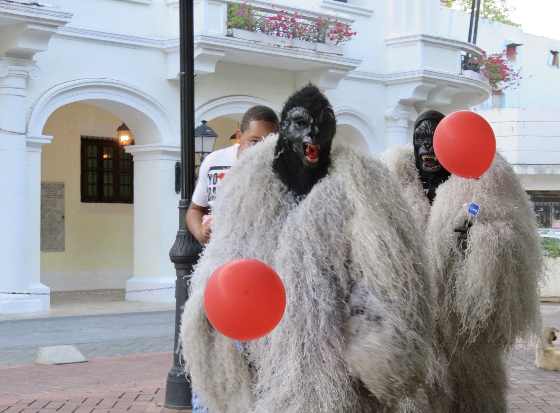 There were several strange creatures roaming the park. The one giving away red balloons had to do with next week’s political election, and the gorillas had something to do with Carneval, but no one could tell us exactly what. Carneval is celebrated for the whole month of February here.