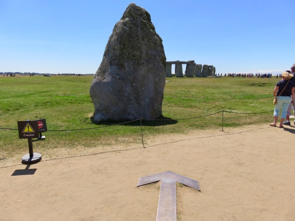 Here’s where the sun shines through the rocks on Midsummer’s sunrise and Midwinter’s sunset. The round rock in front is called the heel stone, and was probably there before the other rocks were moved in.