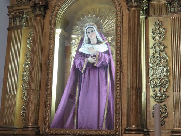 Outside, we looked at the statue of San Pedro, with his keys to the pearly gates and his chicken. Did you know Saint Peter had a chicken?