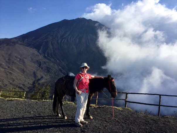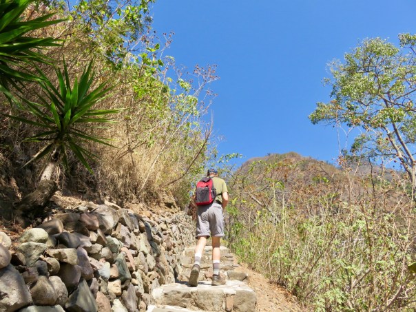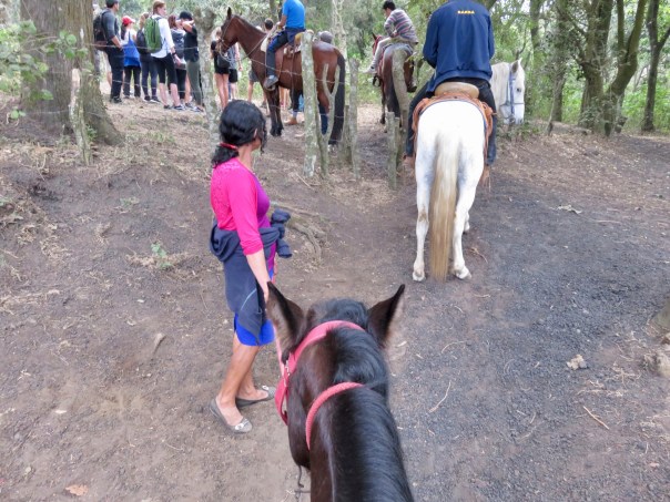 Lillian started up the mountain at a trot, with the twenty-somethings right behind. I started in the middle of the group, but before too long I was at the back of the pack, huffing and puffing. The trail was steep and dusty, and I knew I couldn’t keep up. So? Jim paid for a horse, and I climbed gratefully on.