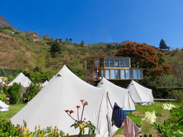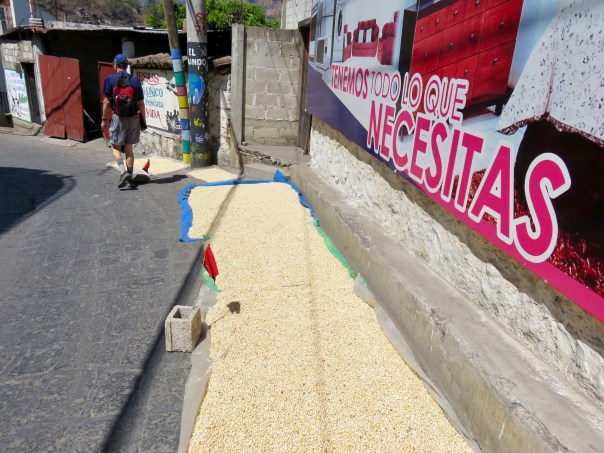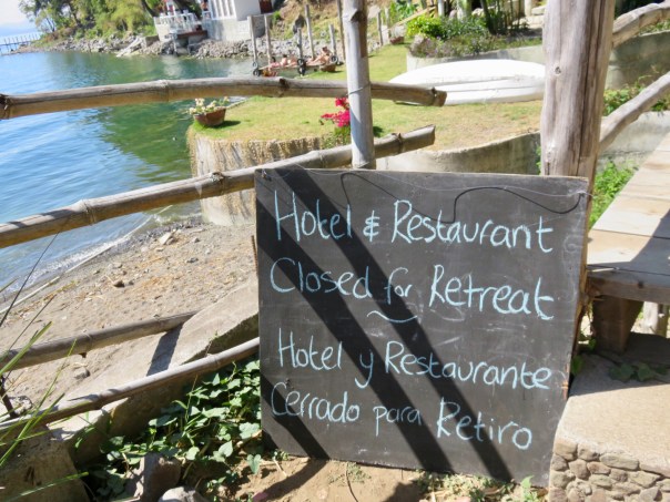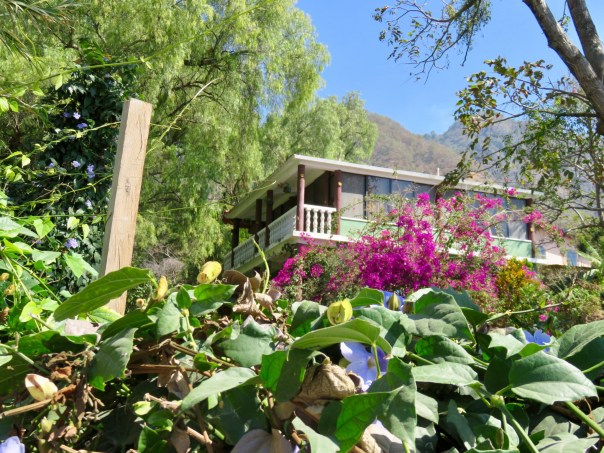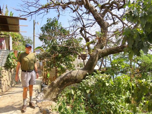 From this side of the lake, the view is not as spectacular, as the volcanos are hidden from view by other mountains. This looks like a more established town, with cinderblock buildings rising several stories. We are staying at El Delfin, a regular hotel. Here is the view from our hotel balcony – a little grittier, and the WiFi isn’t so good, but the shower has plenty of hot water.