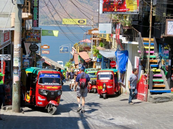 After stopping at all the other waterfront haciendas, and San Marcos, which is known as the place where the hippies hang out (are there really hippies anymore?), we reached San Pedro la Laguna.