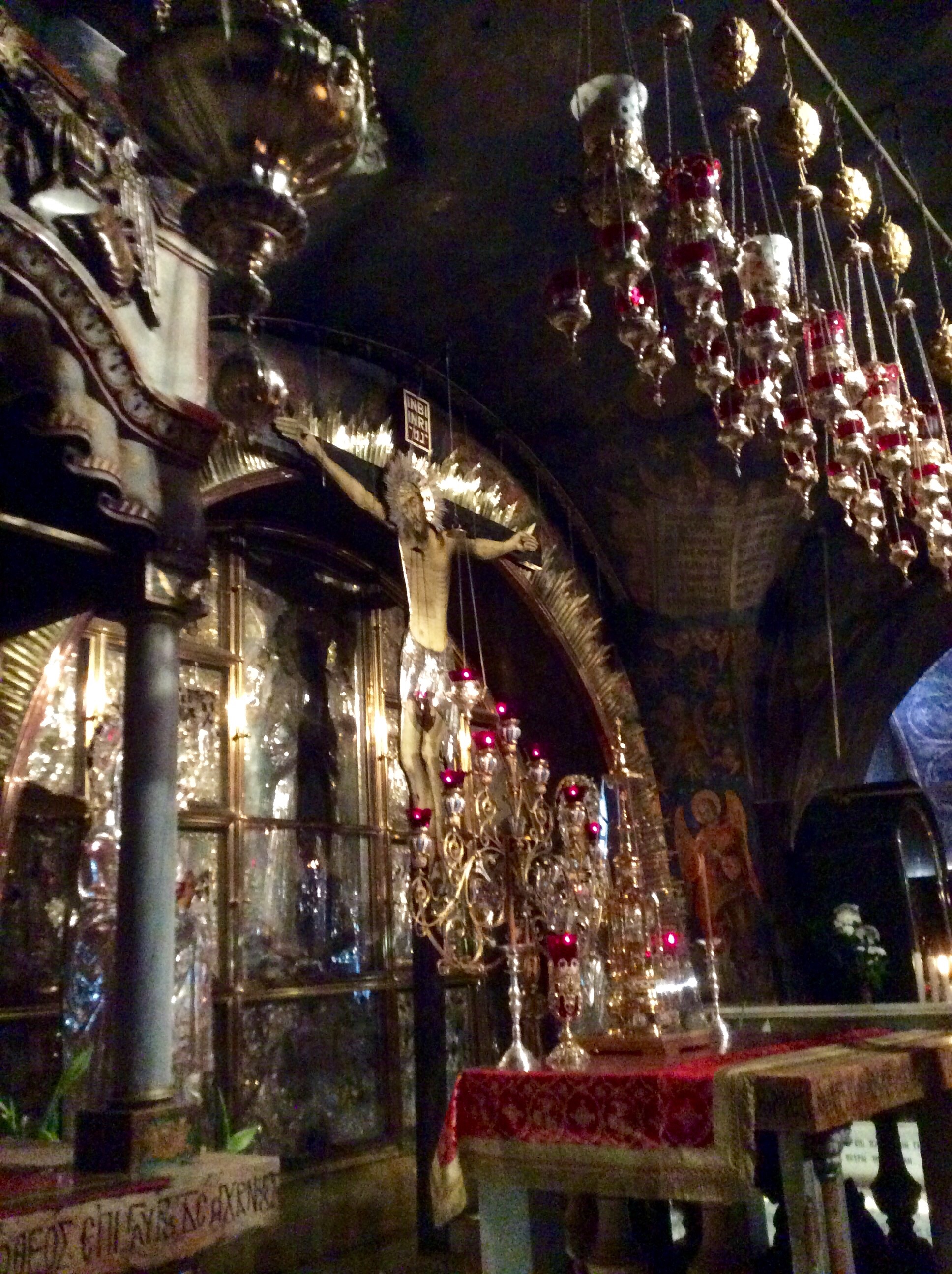 I have to say that this church had lots of gold and glitter, but it did not feel like a holy place to me. Sometimes, all the tourists jostling with their Selfie Sticks just make me sad, although I am no better, trying to capture images for this blog. It was hard to imagine what these objects had to do with the Crucifixion. We actually left the church, bought a book (from a Muslim shopkeeper) to explain what we were seeing, then went back in and walked through again. There was no place to sit and contemplate, which I guess I missed.