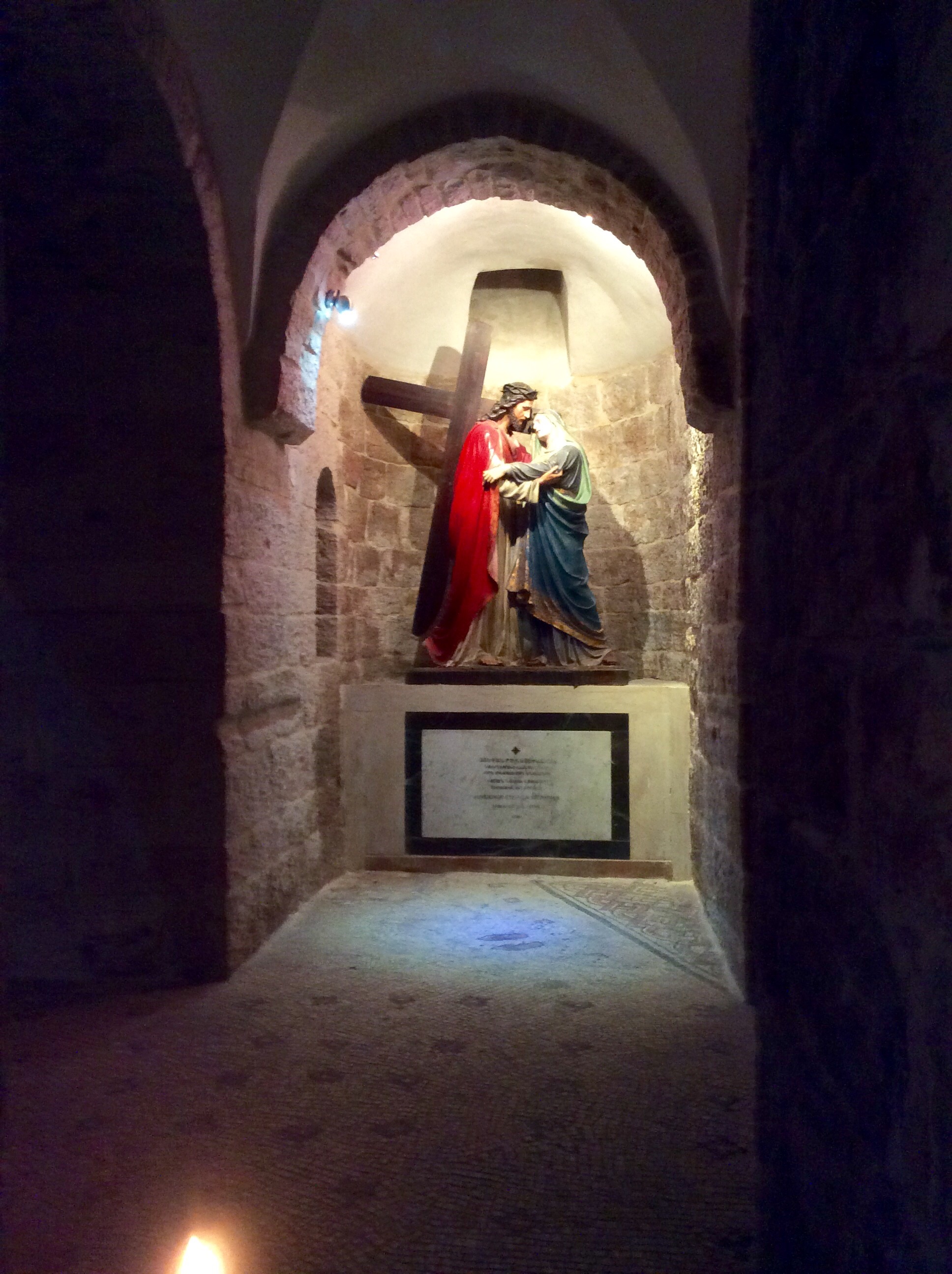 In the Armenian Church in the Armenian Quarter, we saw another station of the cross where Jesus met his mother. Look at the imprint of sandals on the mosaic floor that mark the spot.image