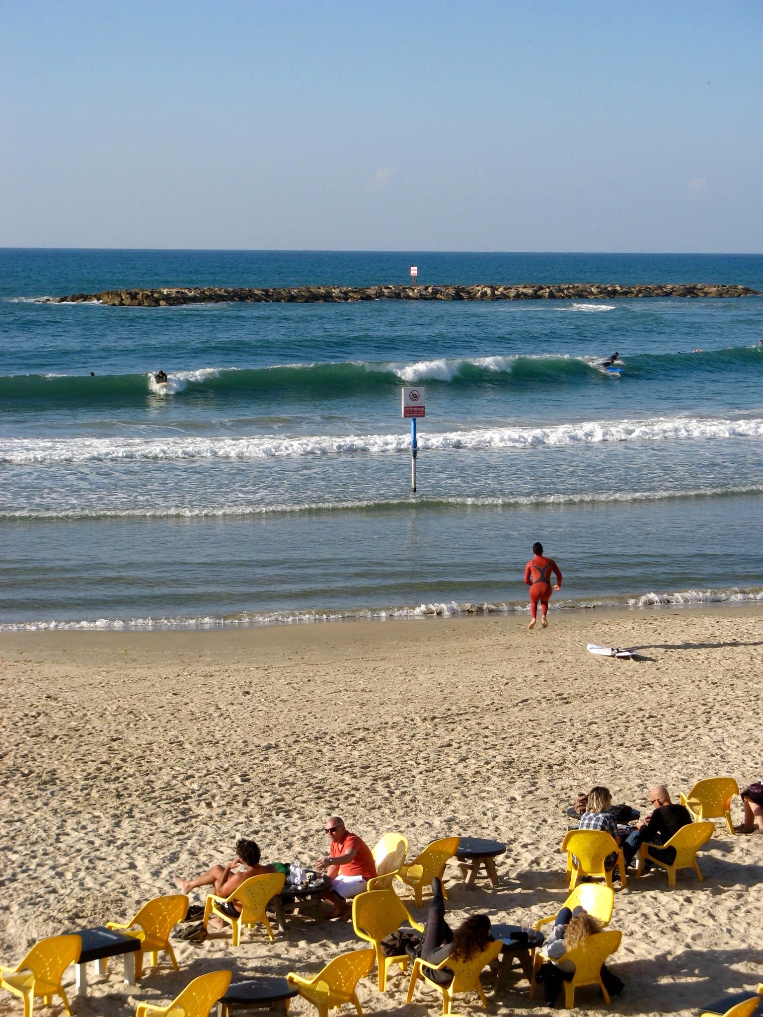 Finished with lunch, we walked down to the beach. It had big pink hotels like Miami.