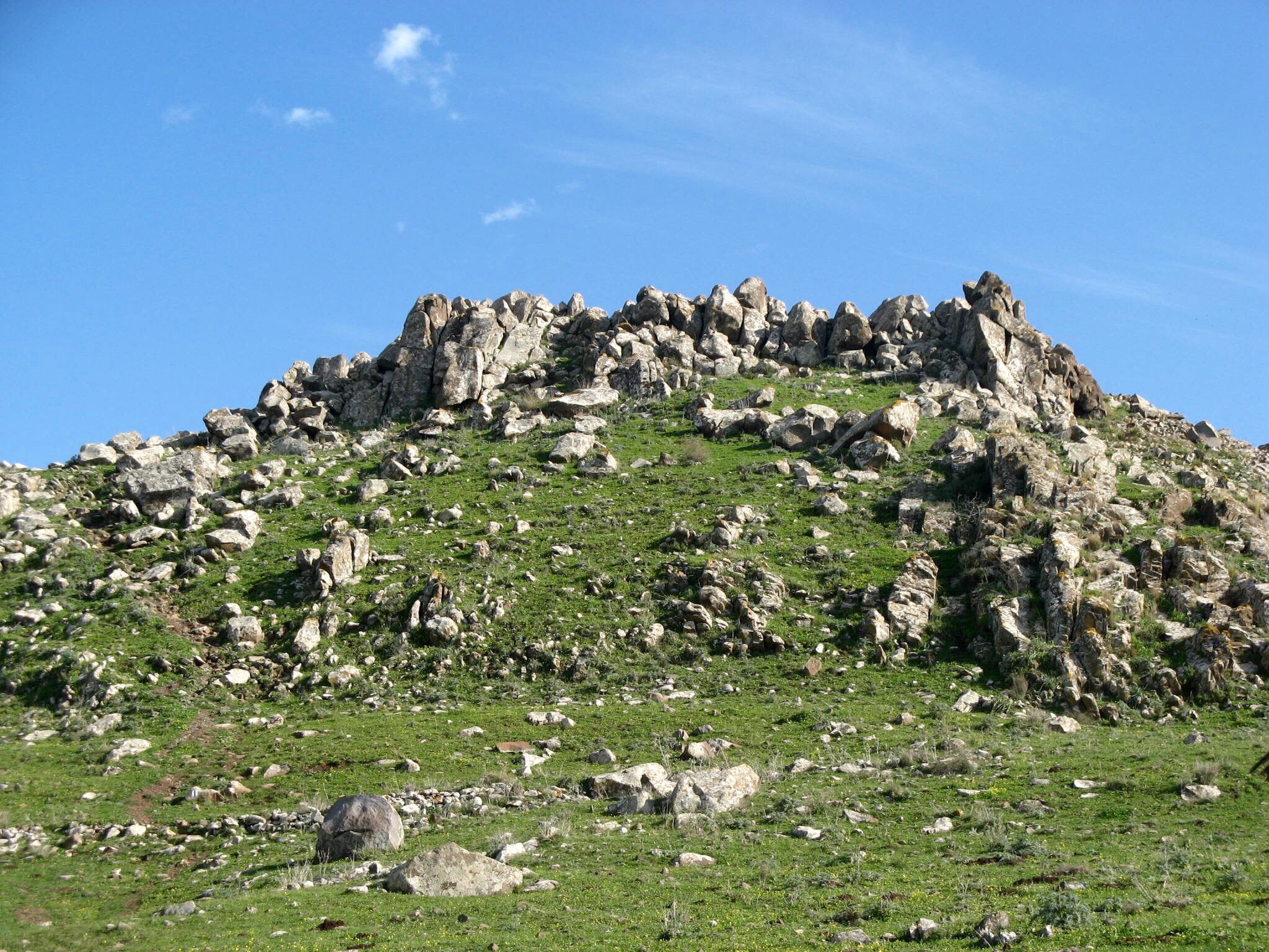 We pass the ruins of the Roman/Byzantine Synagogue of Ancient Arbel, one of the oldest synagogues in the world. The synagogue door, carved from a massive natural limestone outcropping, still stands.