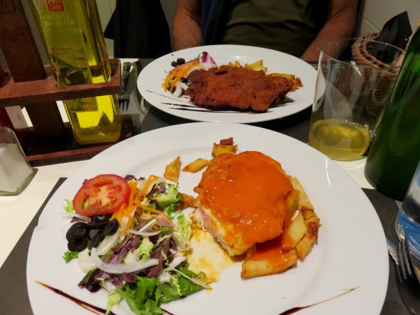 July 2 – Had to get up early this morning to catch our train. Our hotel graciously set out our breakfast buffet a half hour early, so we wouldn’t have to travel without our daily caffeine and jamon allotment. We booked our train ticket to Madrid about five days ago, and were surprised to find all the second class tickets sold out, so we are riding first class in reserved seats. This turns out to be the same as a second class seat, except you are offered a free Spanish newspaper and charged twice the price! Four hours of high speed rail later, we are in Madrid.
