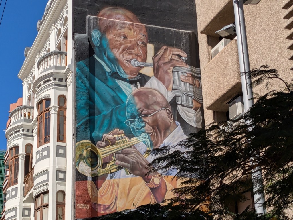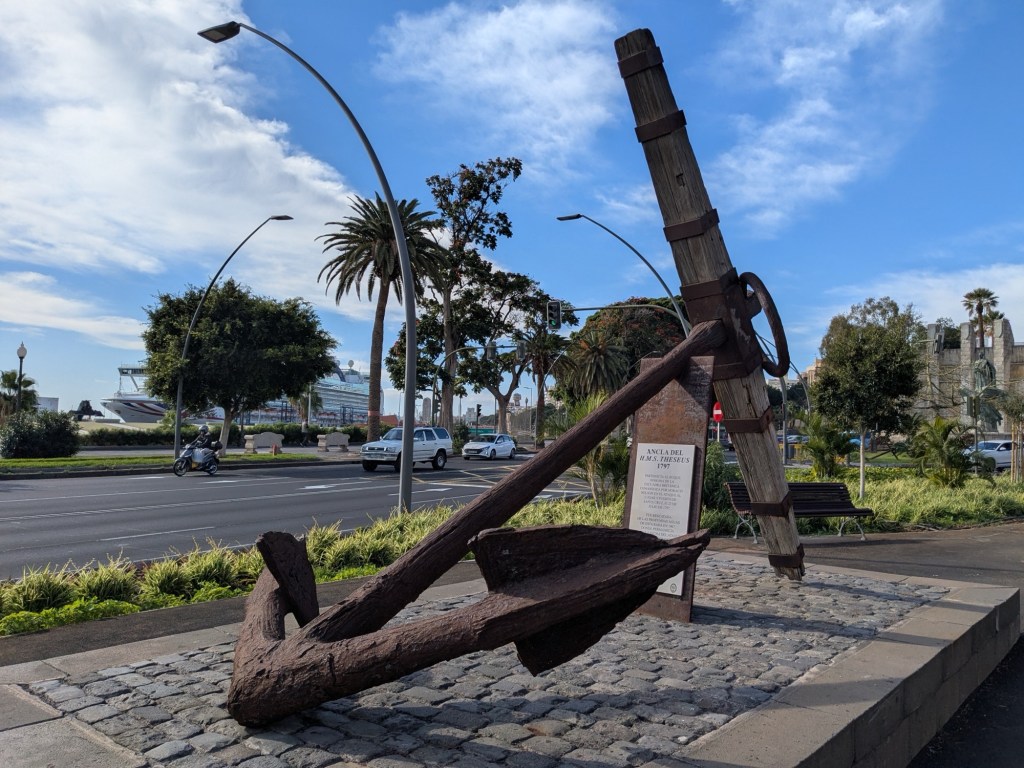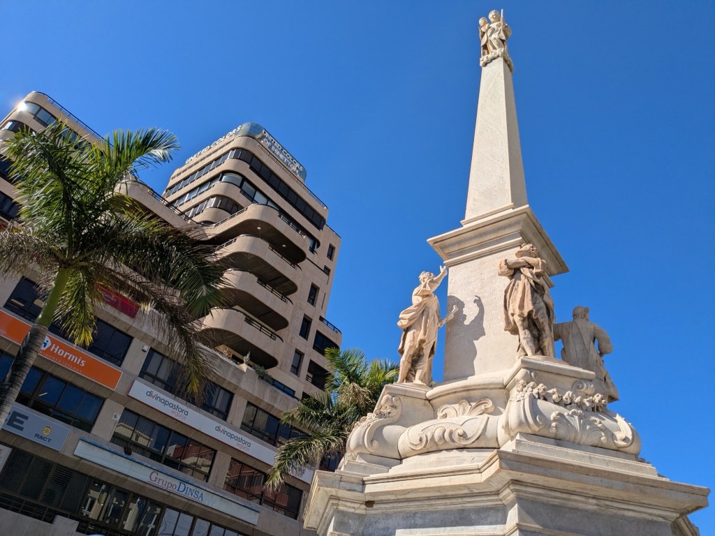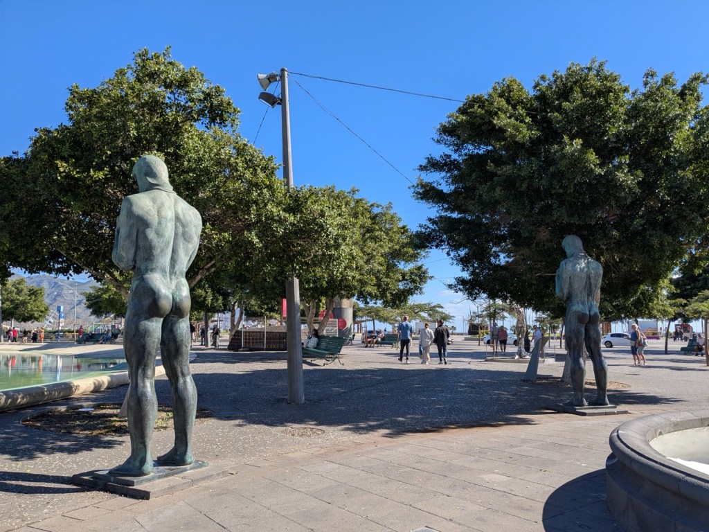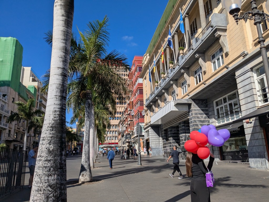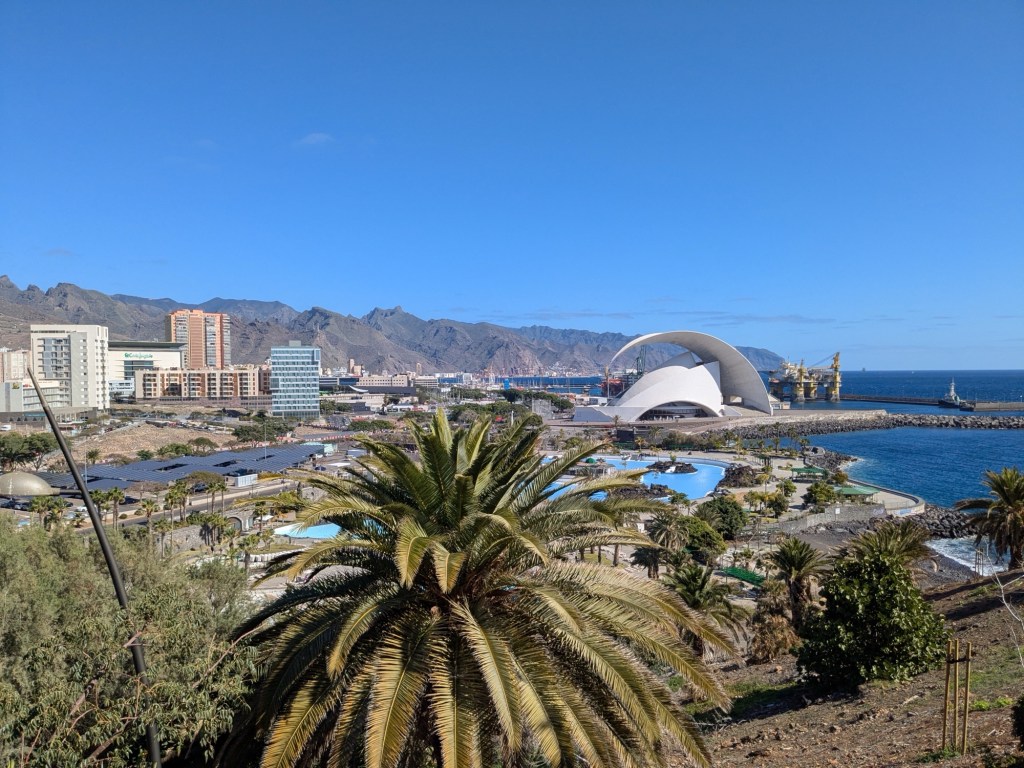 We rode without incident an hour back to Los Christianos, then pushed our way through a crowd onto the next bus (not everybody made it on, but being a New Yorker had advantages here). An hour of traveling north, with the Atlantic in view for the whole trip, brought us to the city of Santa Cruz.