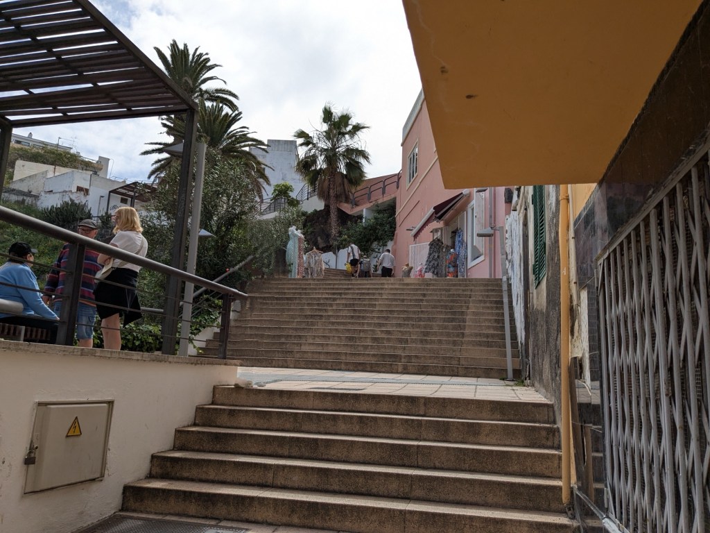 Feb 19 – One more leisurely breakfast, then we packed up and walked to the bus stop for our ride to the bus station. We knew right where to find our next intercity bus, and hopped on a minute before it pulled away. 45 minutes later, we arrived in Puerto de la Cruz.
