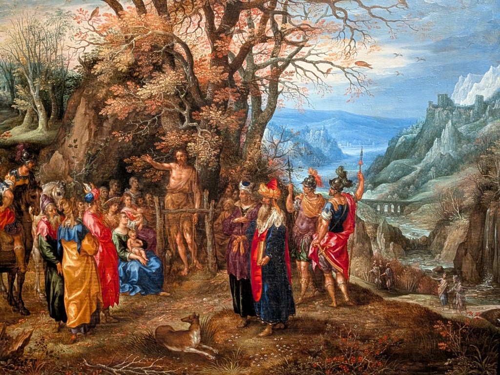Here are two different paintings of John the Baptist preaching to the people.