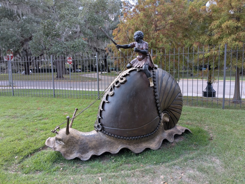 Nov 20 – Today we ventured beyond where our feet could take us, further north to City Park. Our mission was to master the transit system and visit The New Orleans Museum of Art.