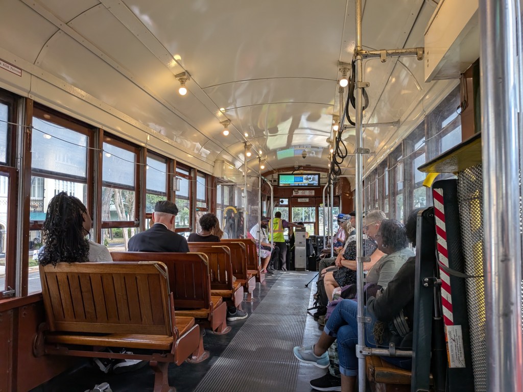 Our hotel concierge showed us how to download the Le Pass app, which magically integrated with Google Maps. Type in your destination, and you pay right in the app. A single ride is $1.25, but we paid for a 24 hour Jazzy Pass so we could hop on and off as needed. The fare is the same whether you choose a bus or a streetcar, so who wouldn’t choose a streetcar?