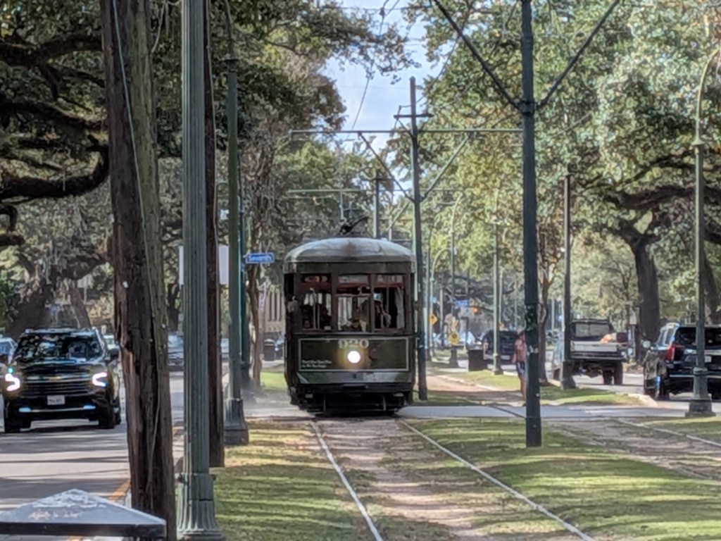 Here comes the green St.Charles streetcar to take us back home